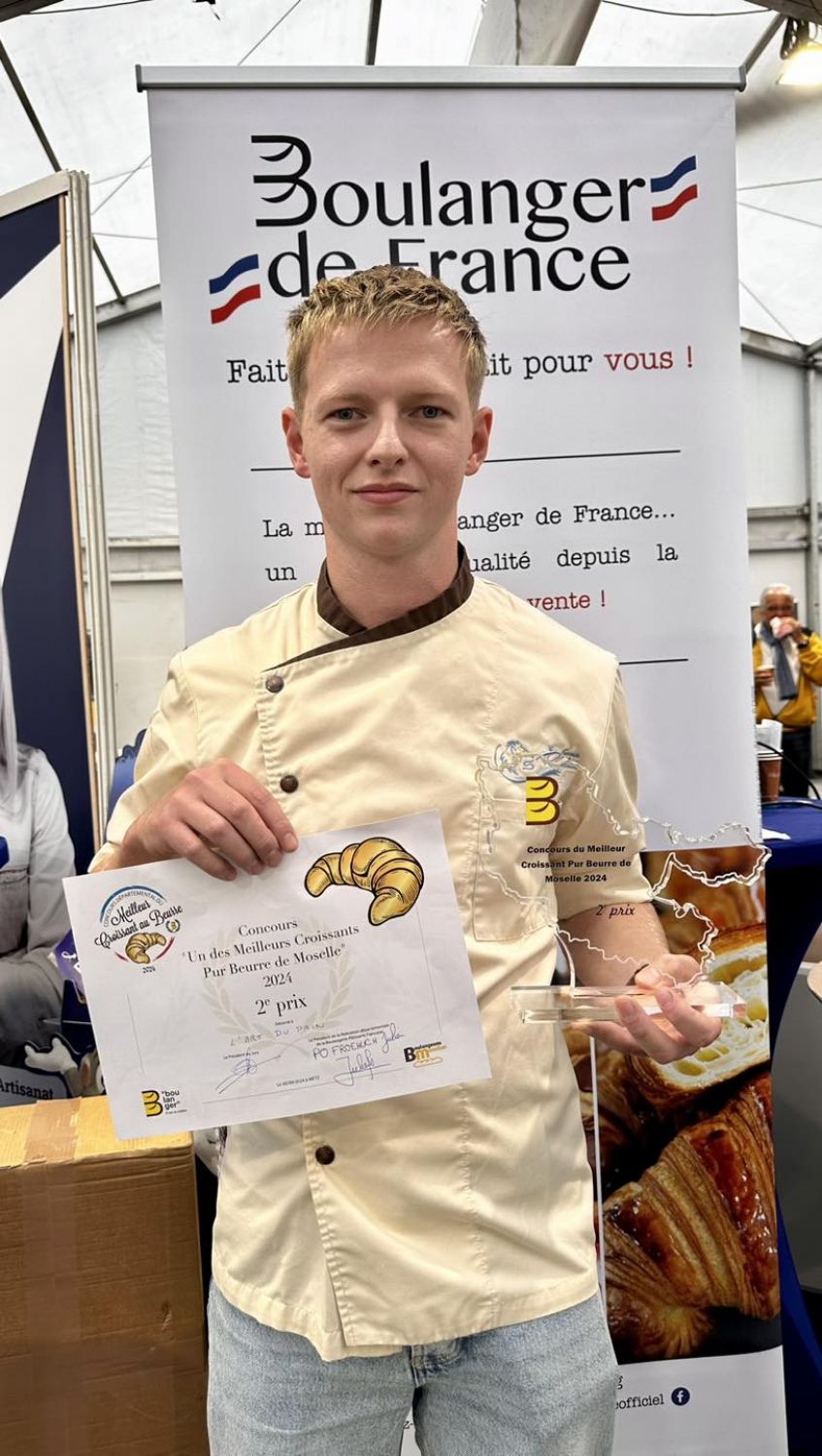 Finalement, sur le podium, à la deuxième place, on retrouve le croissant de la boulangerie « L’art du pain » à Puttelange-aux-Lacs. Le jeune boulanger de Moselle-Est sera d’ailleurs le représentant de la Moselle au concours régional.