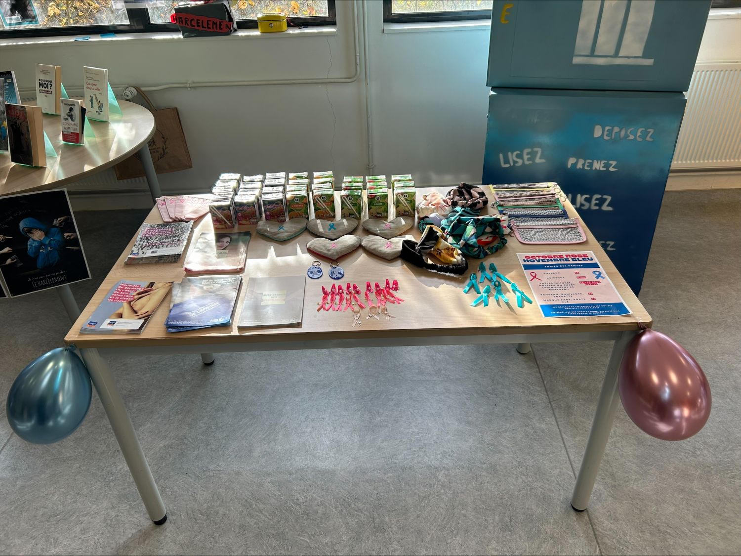 Du 3 au 7 novembre, les étudiantes de 2ème année de BTS SP3S (Services et Prestations des Secteurs Sanitaire et Social) ont organisé, une vente solidaire durant les récréations. Elles ont proposé des objets confectionnés par les élèves (rubans, porte-clés...) ainsi que des boissons et des gâteaux. Le mercredi 5 novembre, une marche solidaire a également été organisée, accompagnée d’une intervention de la Ligue contre le cancer au sein de l’établissement. Au total, la mobilisation des élèves a permis de remettre 377€ à l’association pour octobre rose et novembre bleu.