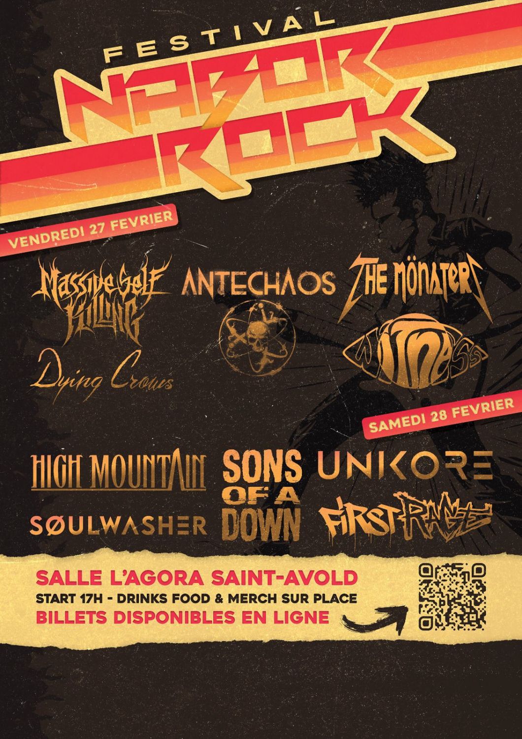 10 groupes locaux et nationaux issus de la scène rock/métal vont s’enchainer. De nombreux stands seront également présents pour accompagner la musique.