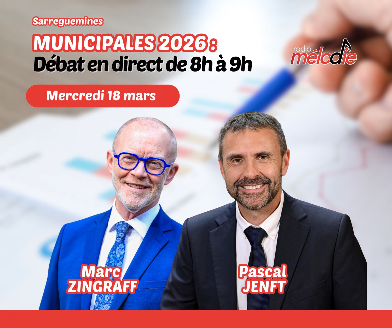 Ils seront tous les deux présents mercredi matin dans nos studios pour un débat à suivre en direct de 8h à 9h. Jeudi, un débat sera également à suivre en direct sur Radio Mélodie entre les 3 candidats en lice à Forbach : Alexandra Cassaro, Abdah Griffete et Eric Diligent.