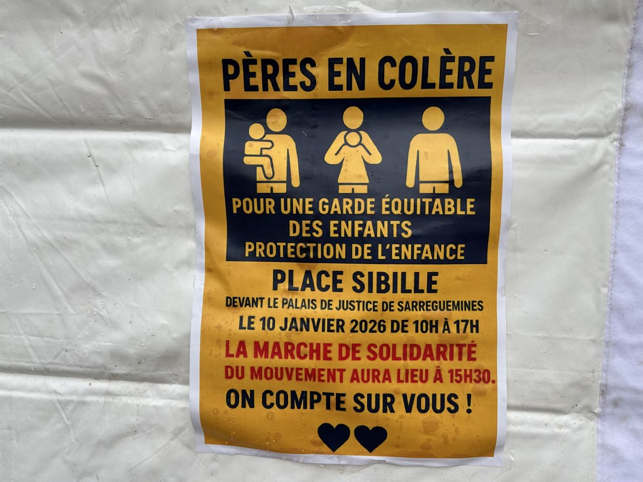 Ce samedi, plus d’une quinzaine de personnes ont répondu à l’appel de la jeune association « Pères en Colère ». Une mobilisation avait lieu sur la place Sibille à Sarreguemines. Sur place, les parents d’enfants séparés pointaient du doigt les décisions de justice liées à la garde d'un enfant, mais également une inégalité de partage entre les pères et les mères.