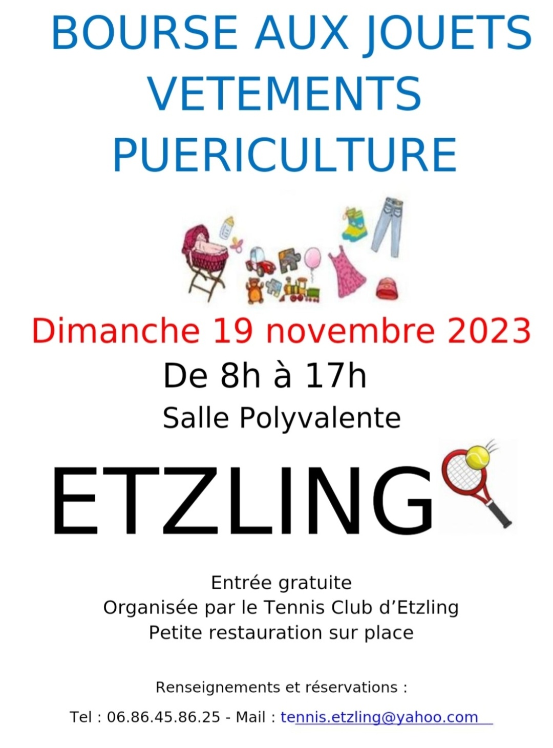 Bourse aux jouets, vêtements et puériculture organisée par le tennis club d'Etzling.