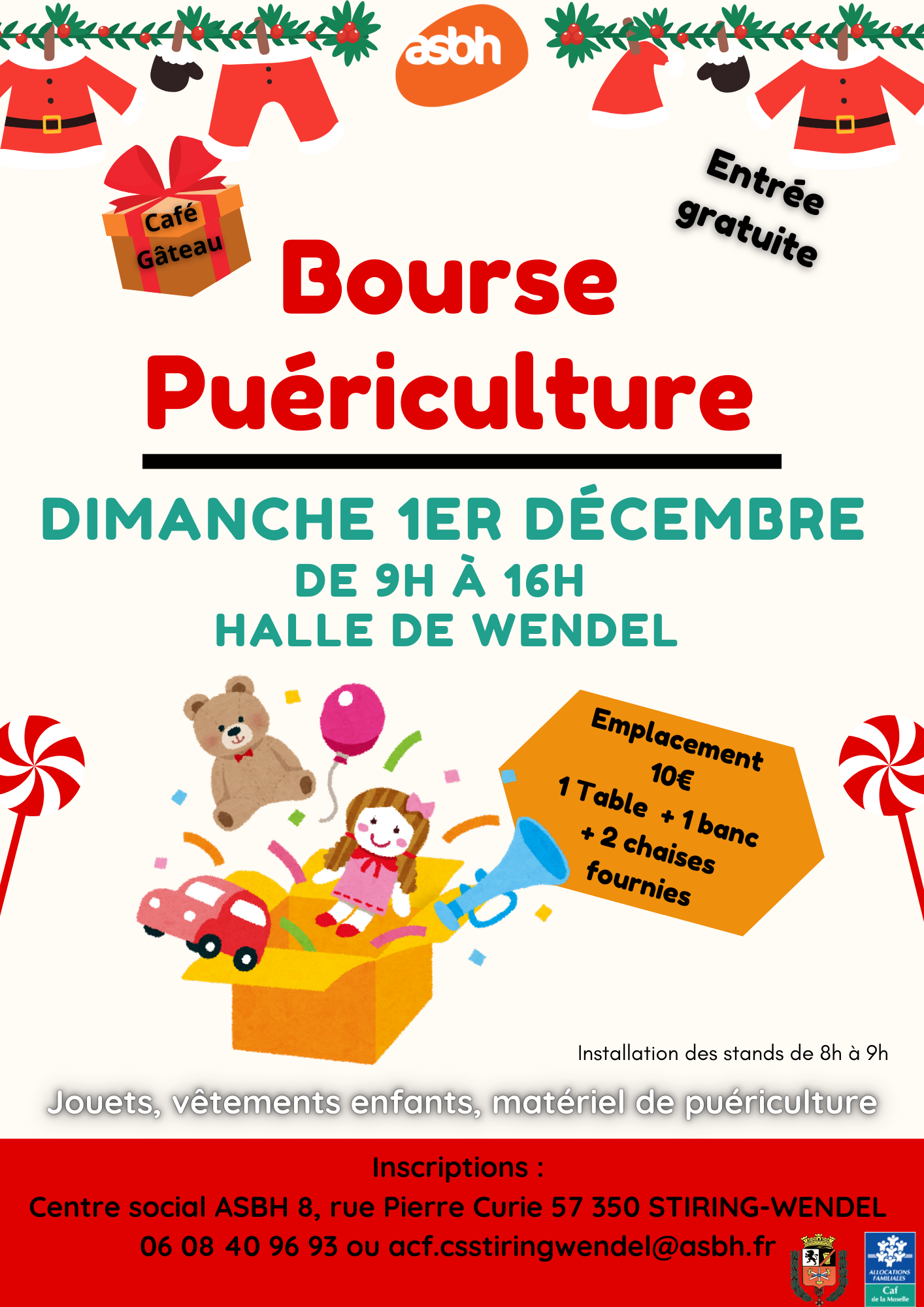 Le centre social ASBH de STIRING-WENDEL organise sa 3ᵉ bourse puériculture le dimanche 1er décembre 2024 de 9h à 16h pour le public.