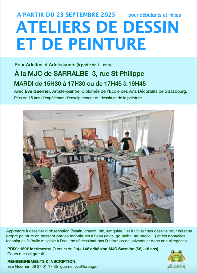 Prix : 189€ le cycle (9 cours de 2 heures) +14€ adhésion MJC Sarralbe (-16 ans, 6€)