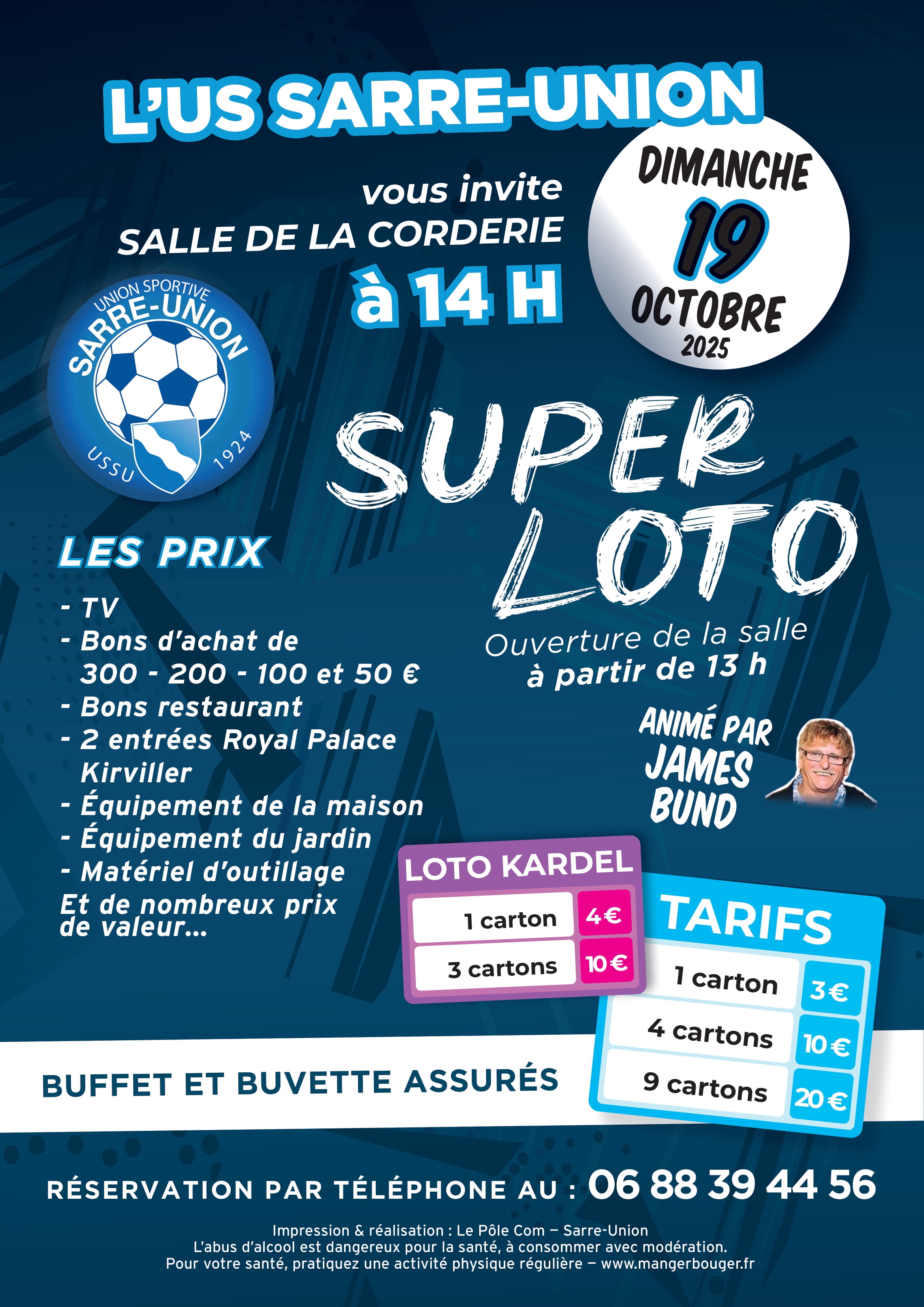 L'U.S. Sarre-Union organise un super loto le dimanche 19 octobre à 14h à la salle de la corderie à Sarre-Union.