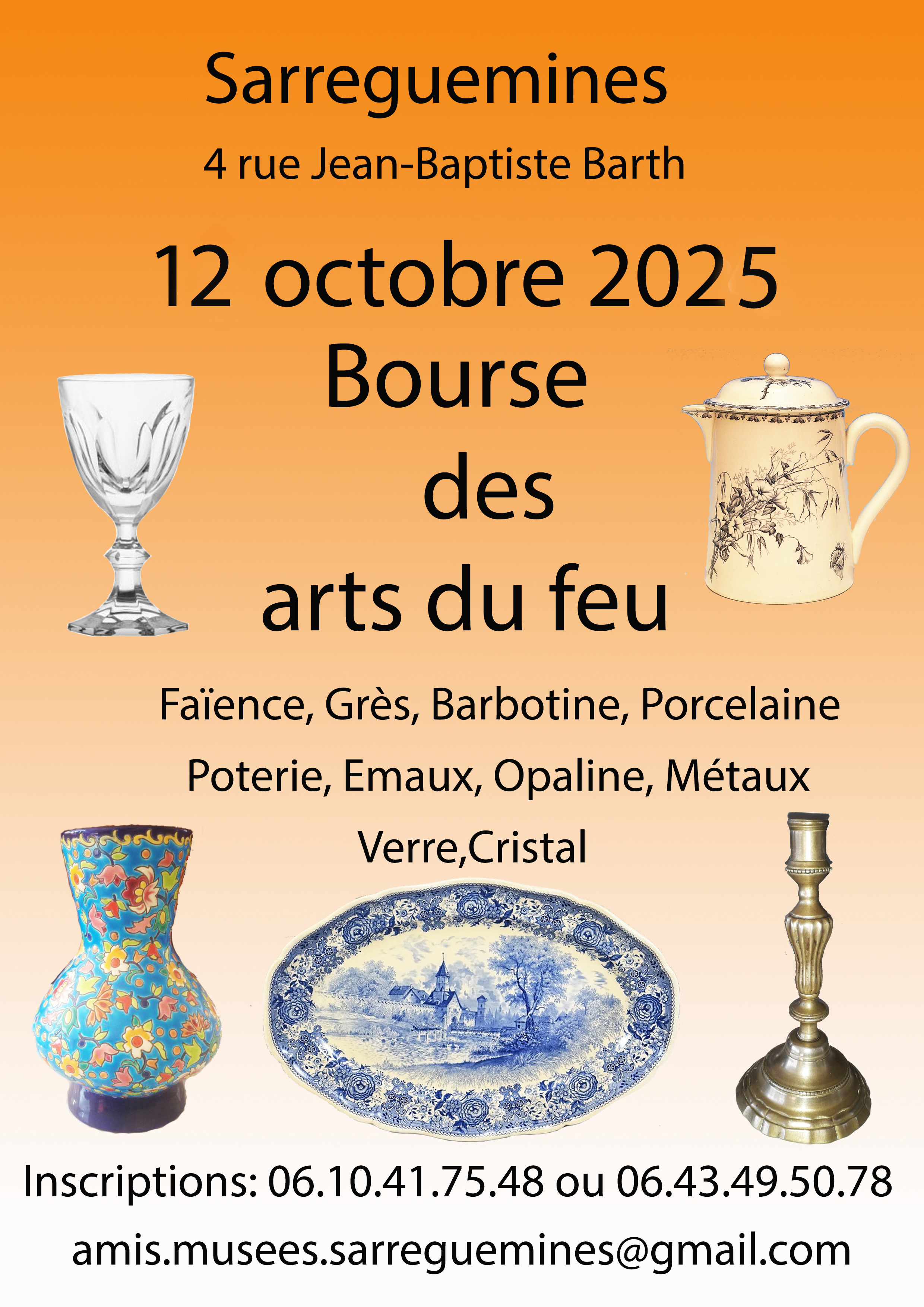 Notre association organisera une Bourse des Arts du Feu à Sarreguemines le 2e dimanche du mois d’octobre 2025