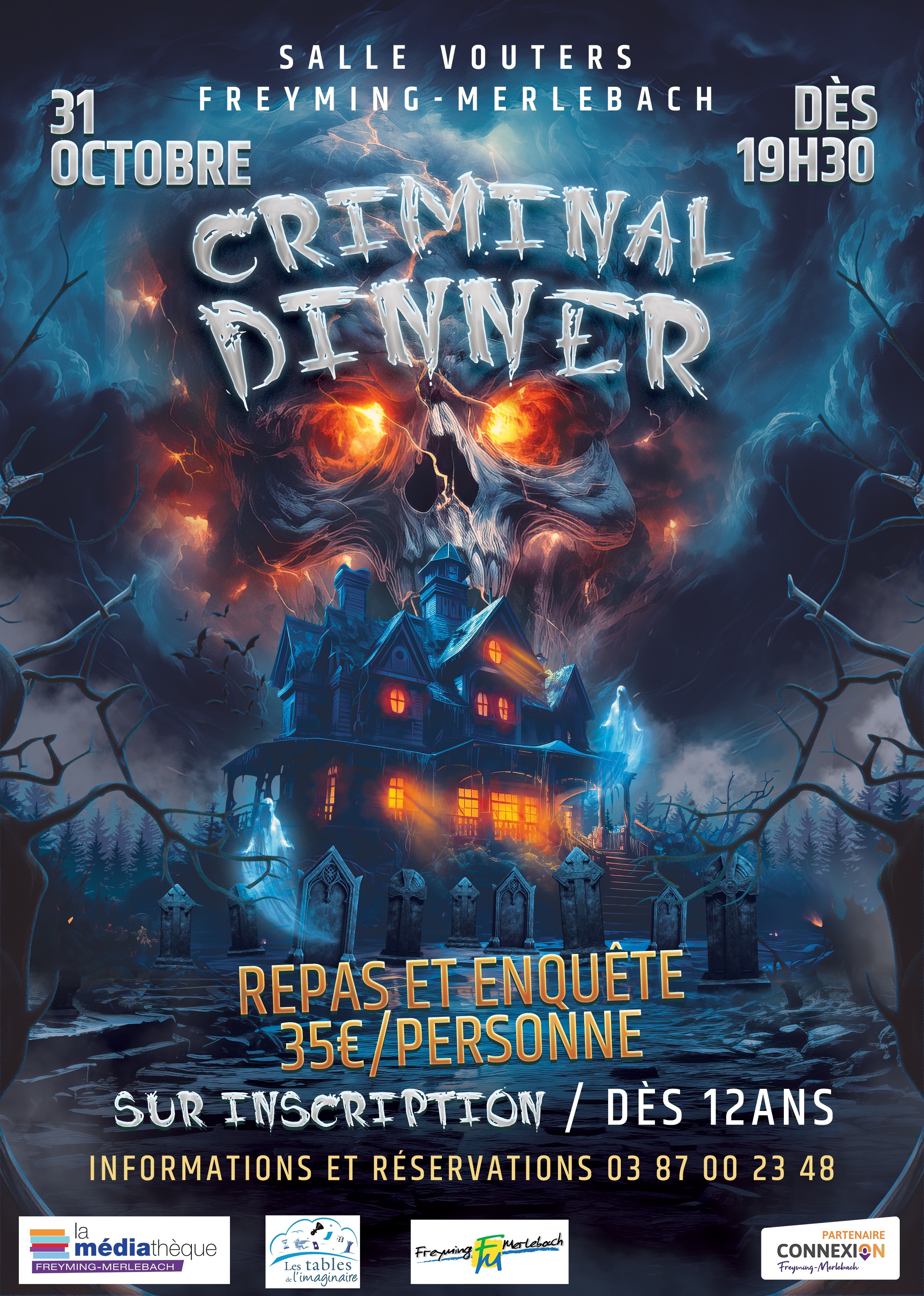 Salle Vouters, dès 19h30. Sur inscription (dès 12 ans) : 35€ tout inclus (animation, repas complet et carnet d'enquêteur)