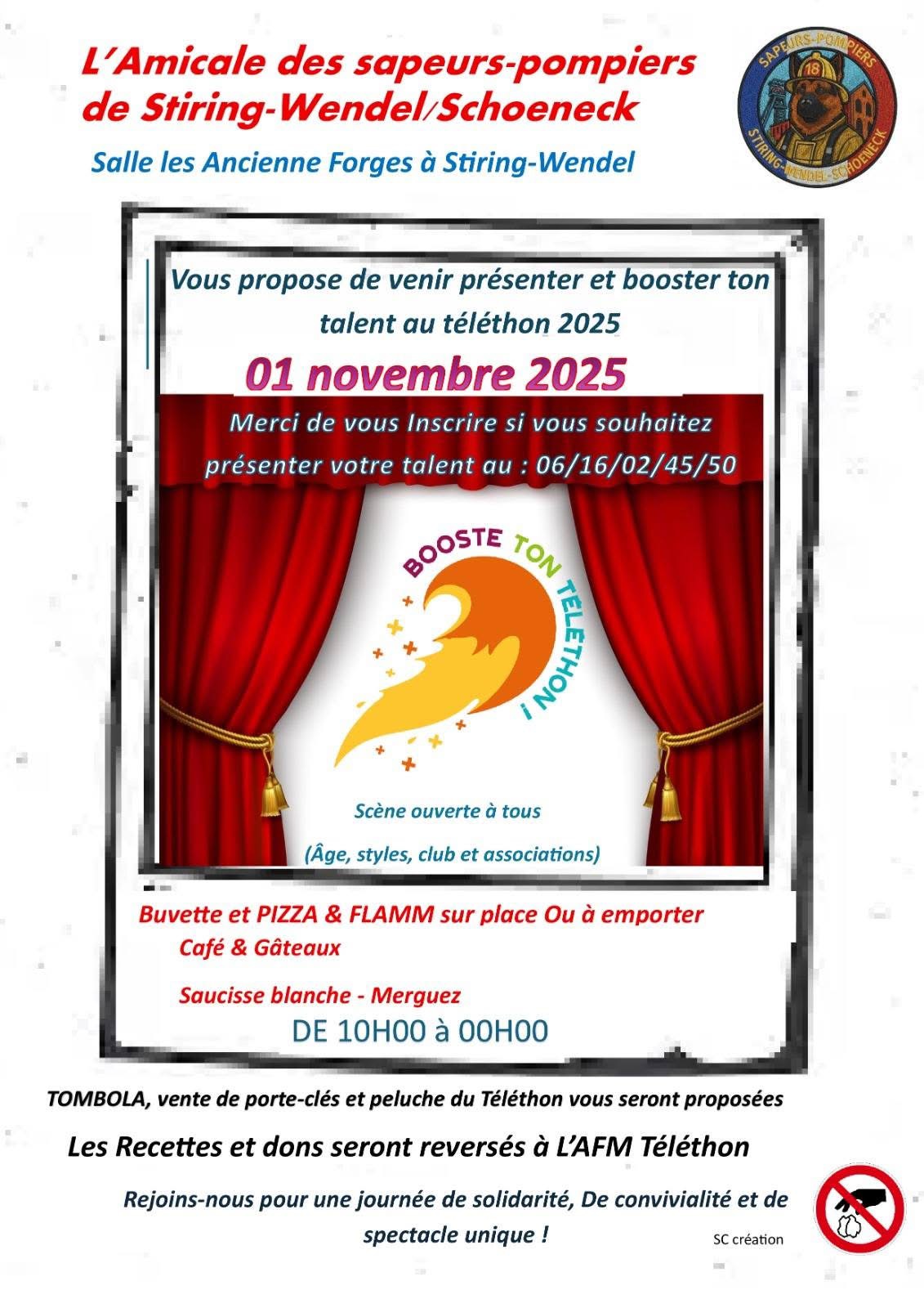 L’Amicale des sapeurs-pompiers de Stiring-Wendel/Schœneck vous invite à venir présenter et booster votre talent lors du Téléthon 2025 !
