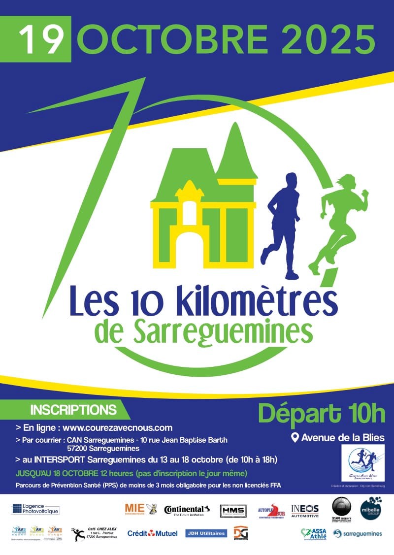 à l'aide du bulletin d'inscription accompagné de votre règlement par chèque bancaire (à l'ordre du CAN) au siège du club : 10, rue Jean Barth 57200 SARREGUEMINES ou directement chez INTERSPORT Sarreguemines du 13 au 18 octobre 2025. Droit d'inscription: 14€