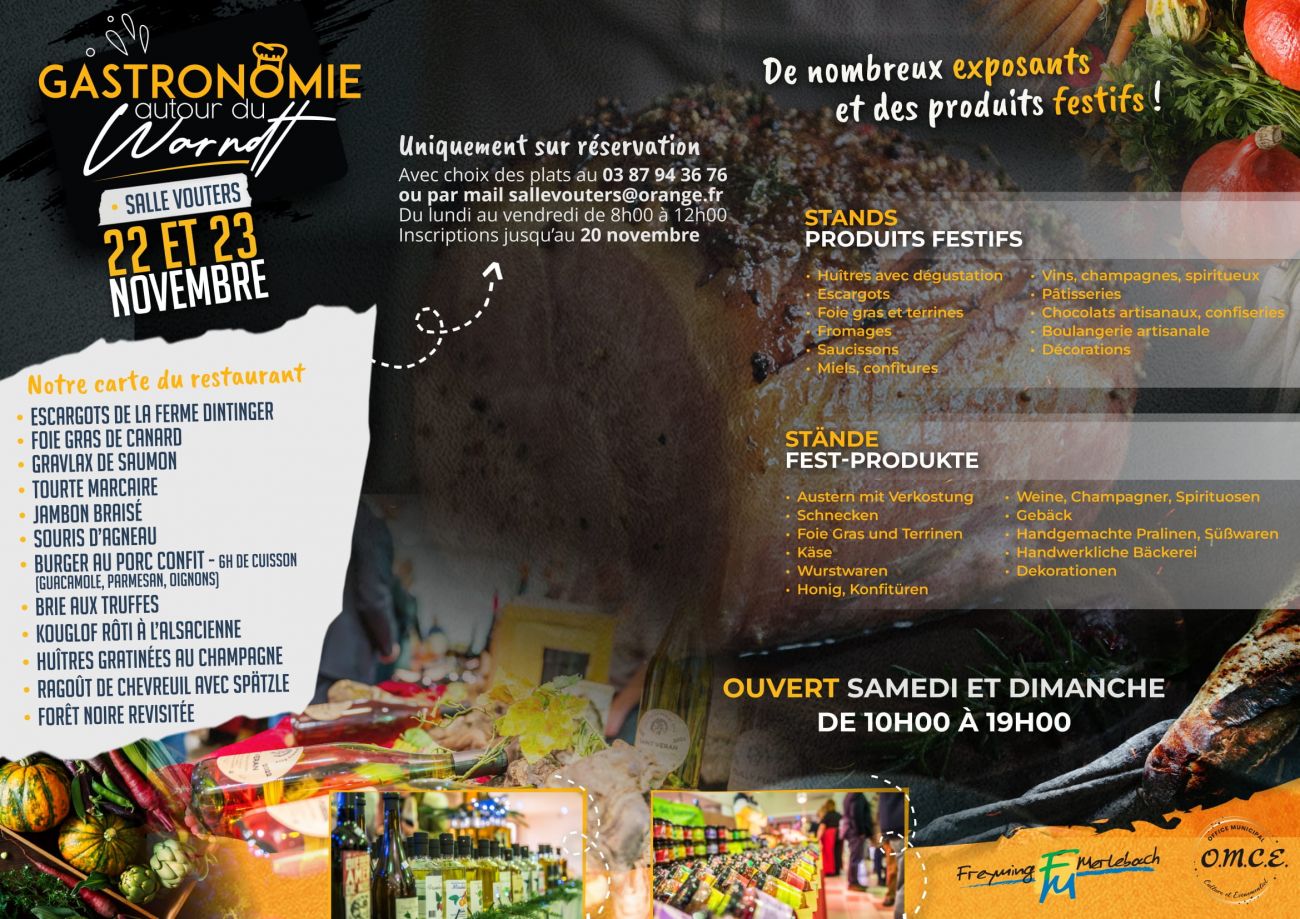 Venez vivre une expérience gustative inoubliable au Salon de la Gastronomie autour du Warndt ! Les 22 et 23 novembre, à la Salle Vouters de Freyming-Merlebach.