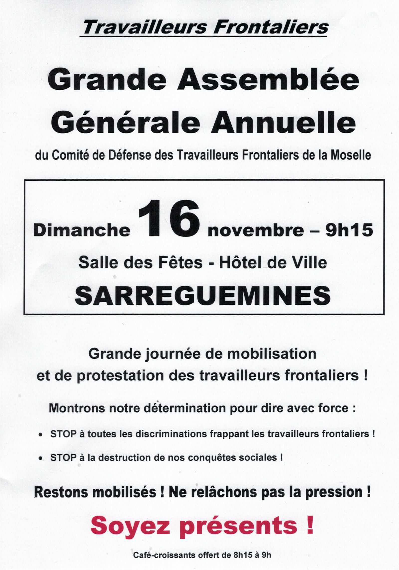 Grande Assemblée Générale Annuelle du Comité de Défense des Travailleurs Frontaliers de la Moselle