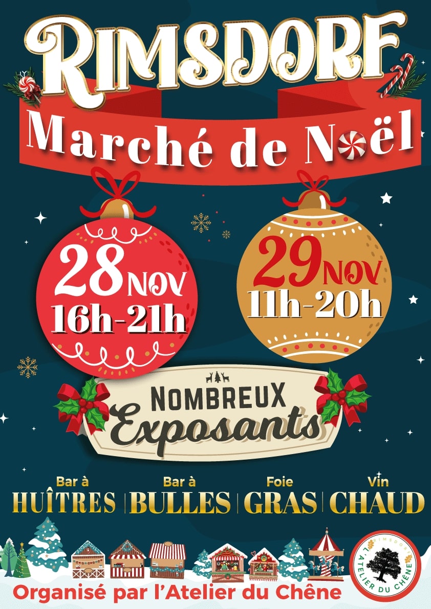 L'association l'Atelier du chêne de Rimsdorf organise un marché de Noël le vendredi 28 de 16h à 21h et le samedi 29 novembre de 11h à 20h.