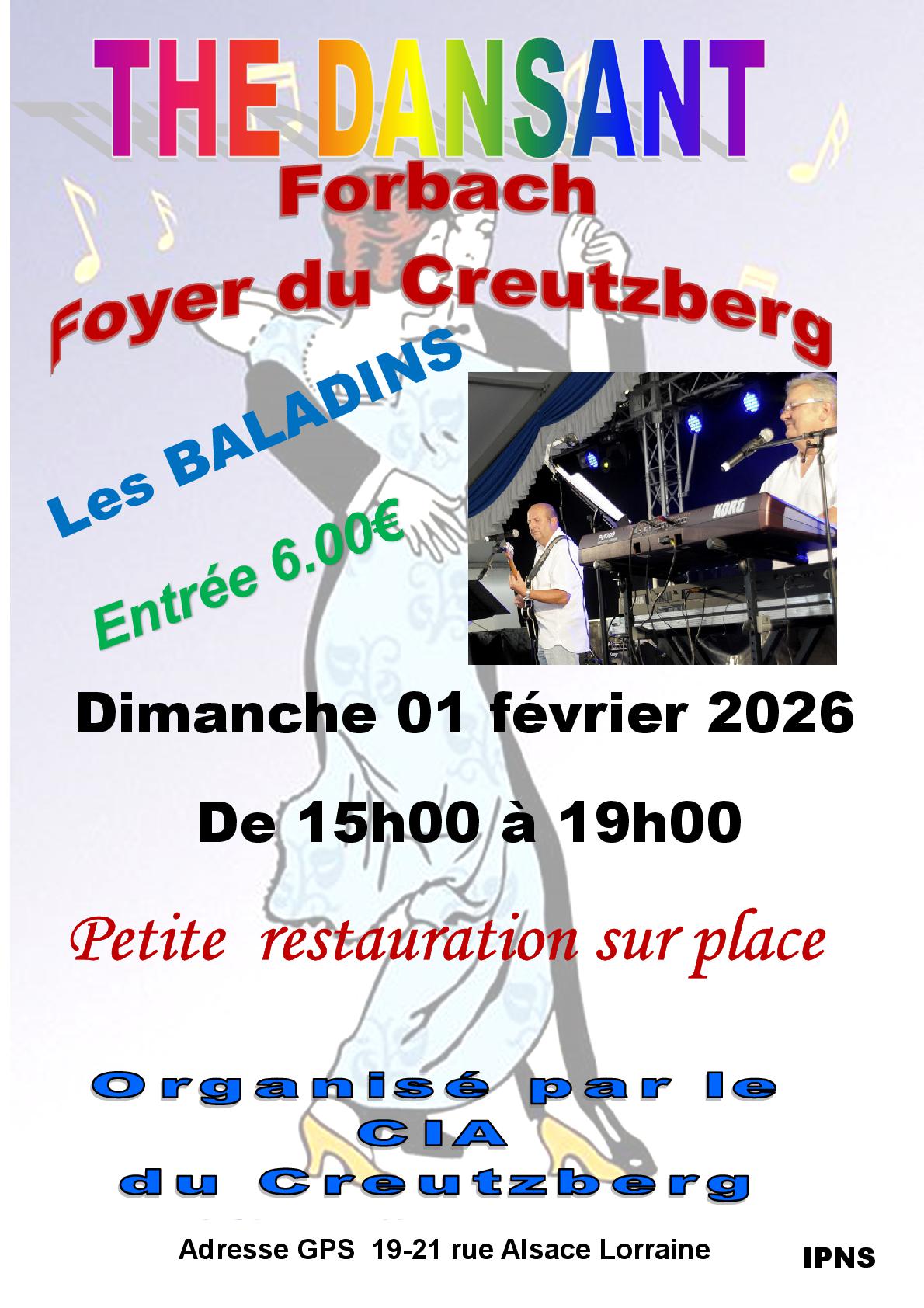 Le CIA Creutzberg organise un thé dansant le dimanche 01 février de 15h à 19h au foyer du Creutzberg à Forbach.