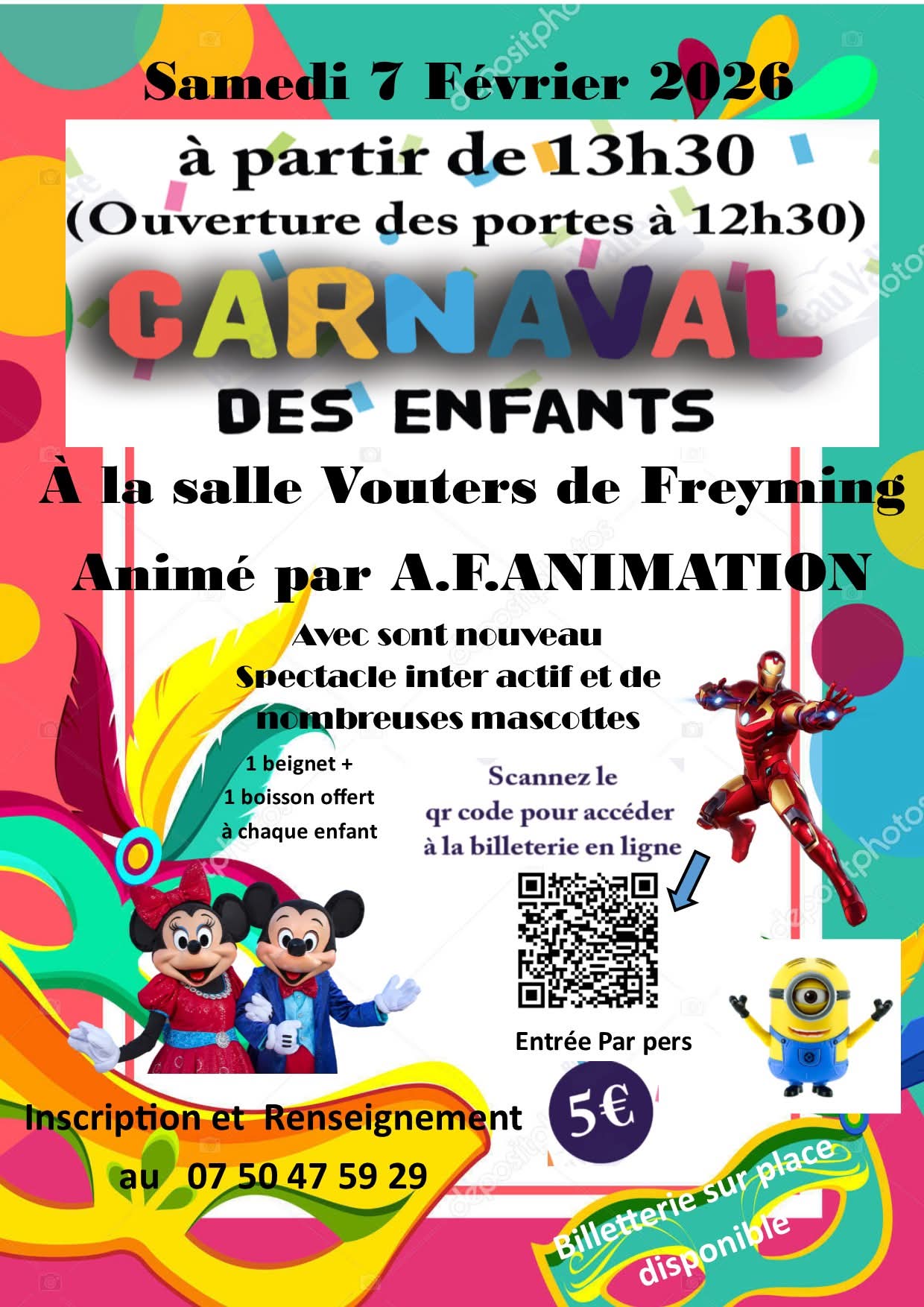 A partir de 13h30 aura lieu notre carnaval des enfants à la salle Vouters de Freyming Merlebach.