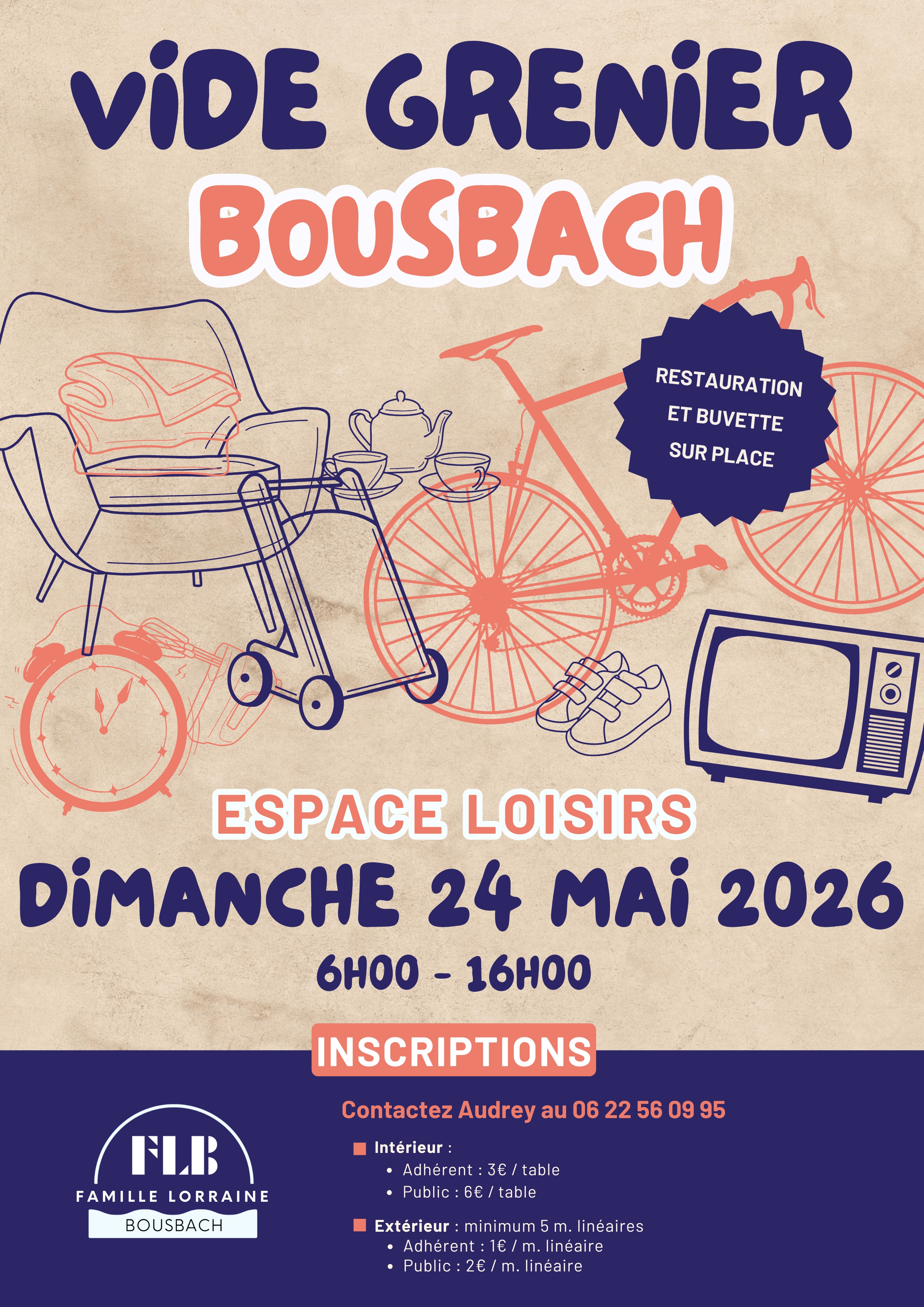 La Famille Lorraine de Bousbach vous donne rendez-vous le dimanche 24 mai 2026 à l’Espace Loisirs de Bousbach pour son grand vide-grenier.