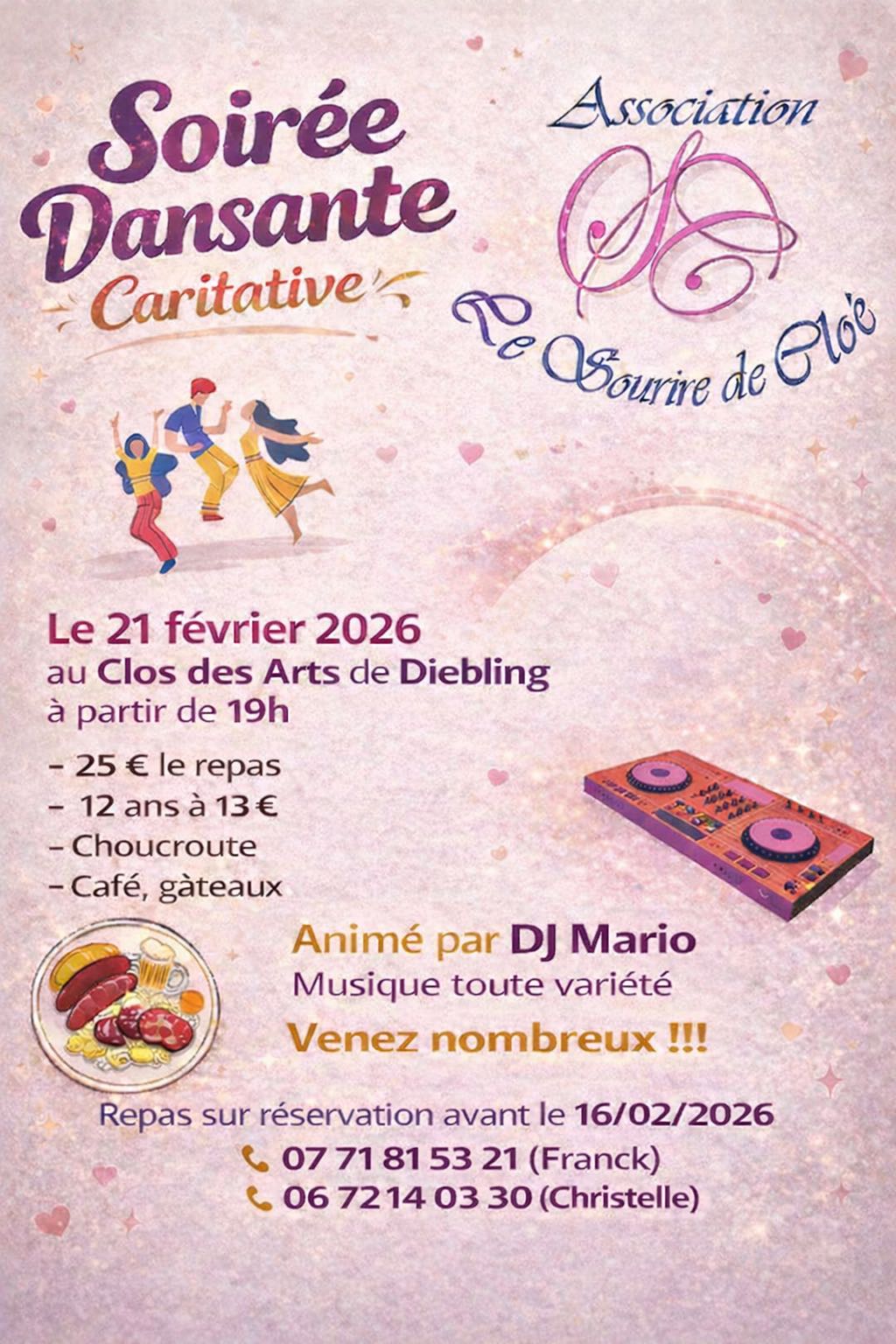 L'association "le sourire de Cloé" organise une soirée dansante caritative le samedi 21 février à partir de 19h au clos des arts de Diebling.