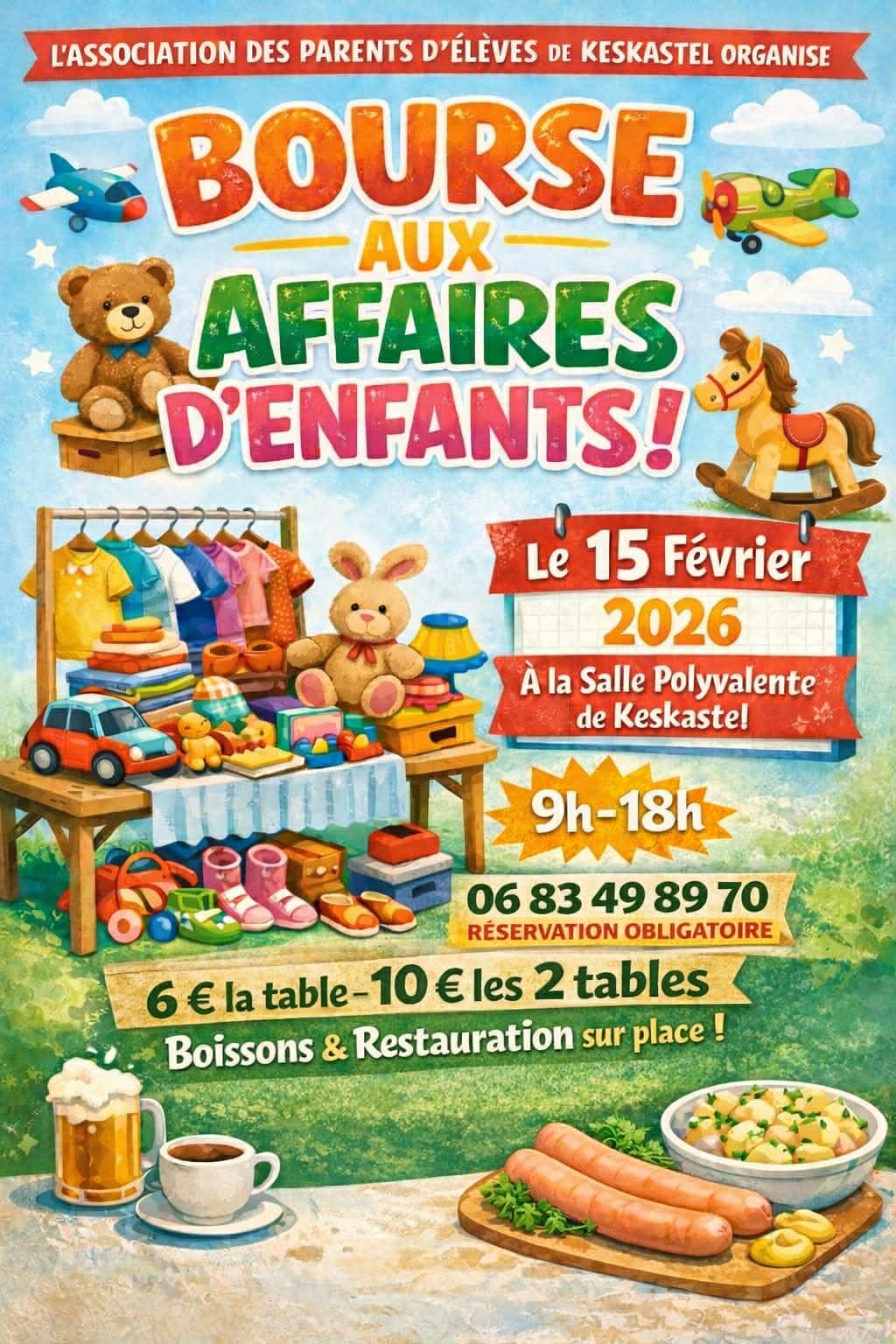 L’Association des Parents d’Élèves « Nos, rayons de soleil » de Keskastel et Schopperten vous invite à sa première bourse aux affaires d’enfants le 15 février, de 9h à 18h. Venez chiner vêtements, jouets, livres et matériel de puériculture à petits prix !