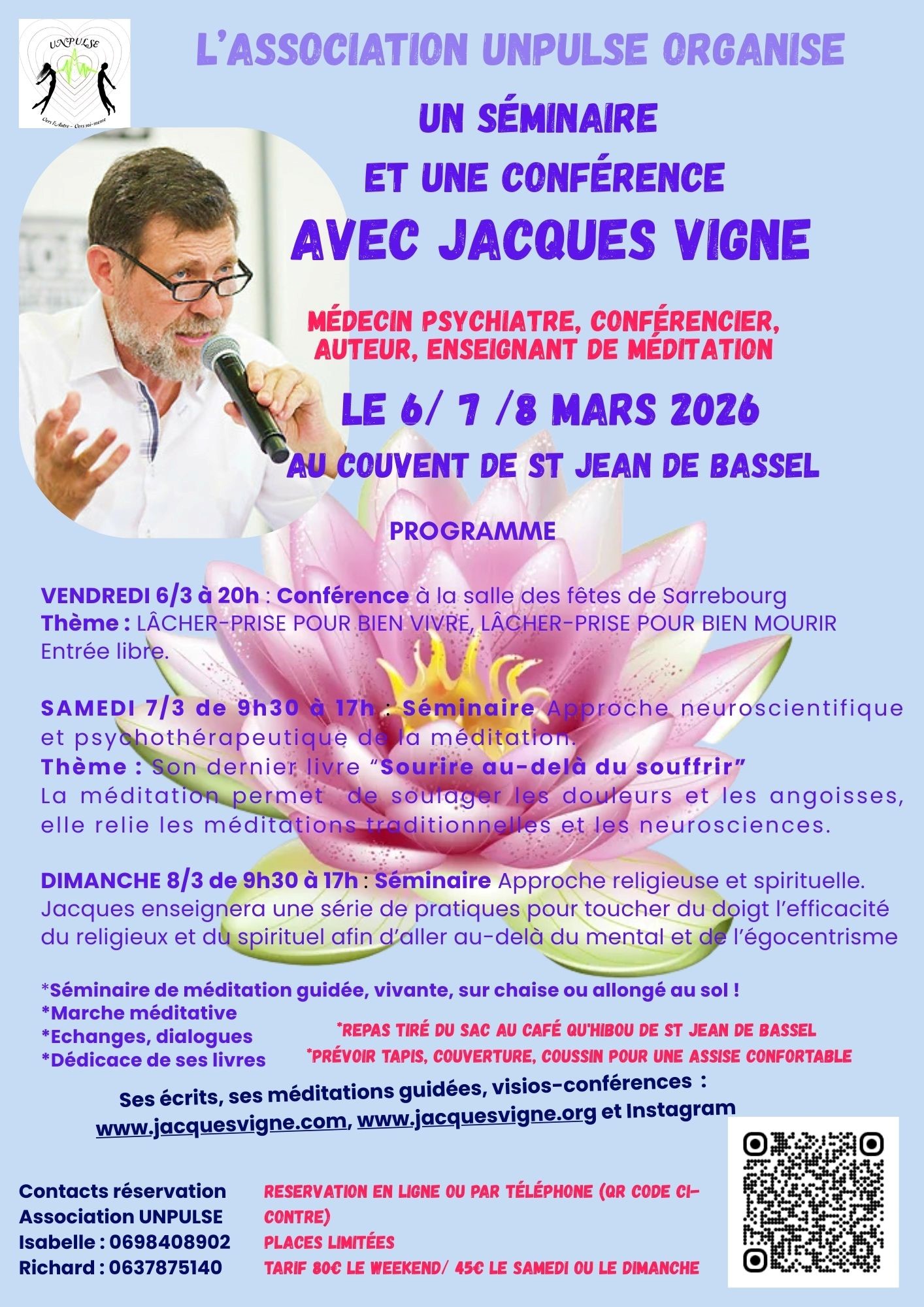 L'association UNPULSE organise un grand évenement le 6/7/8 mars 2026. Il s'agit de la venue de Jacques Vigne.