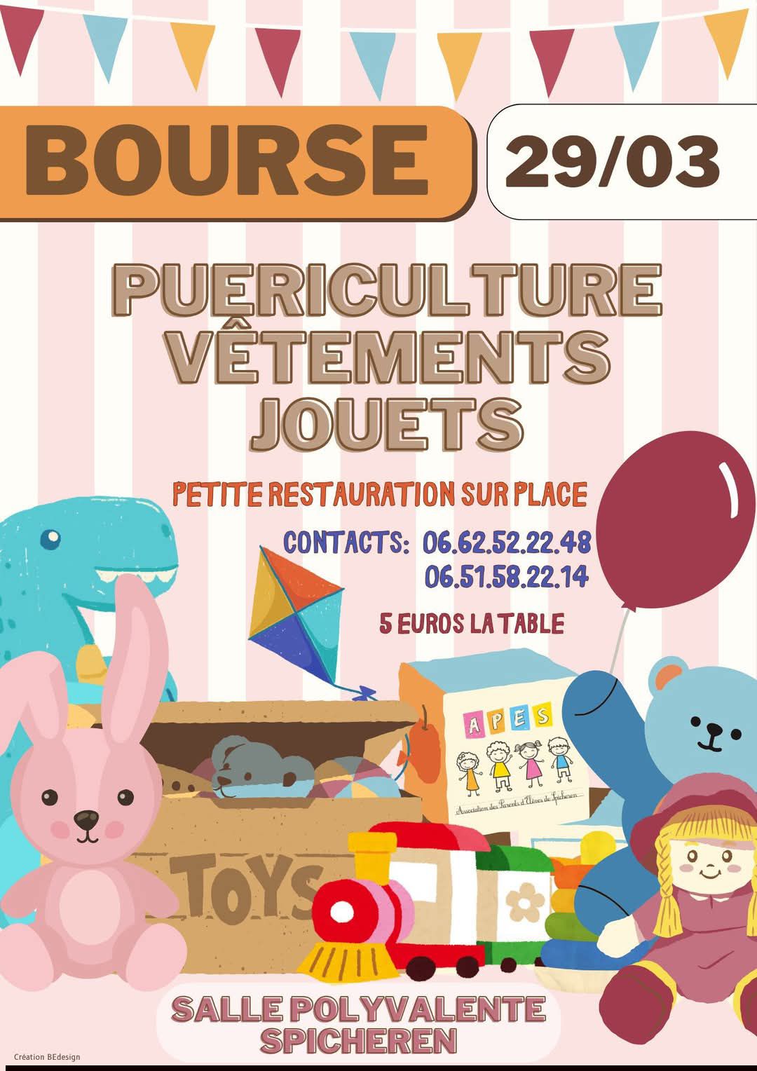 L'APES organise une bourse puériculture, vêtements et jouets dimanche 29 mars de 8h à 17h à la salle polyvalente de Spicheren.