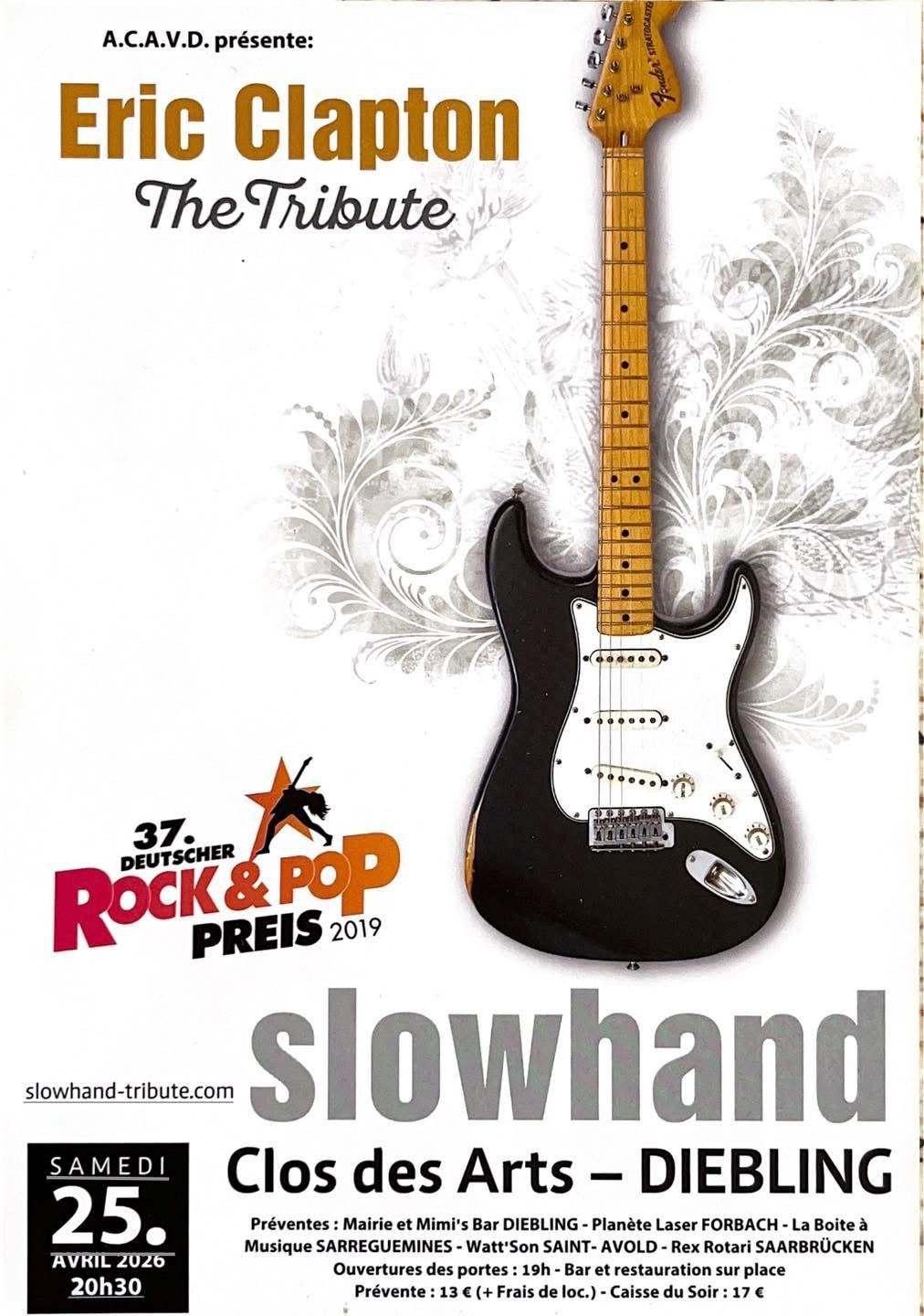 L'A.C.A.V.D. présente Eric Clapton The Tribute, le samedi 25 avril à 20h30 au Clos des Arts à Diebling.