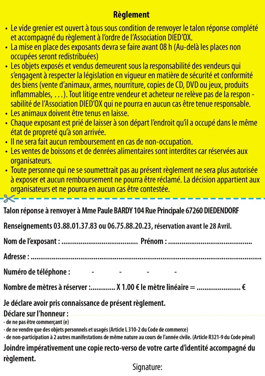 - 16ème Vide Grenier le 1er Mai à Diedendorf, organisé par l'association Died'Ox