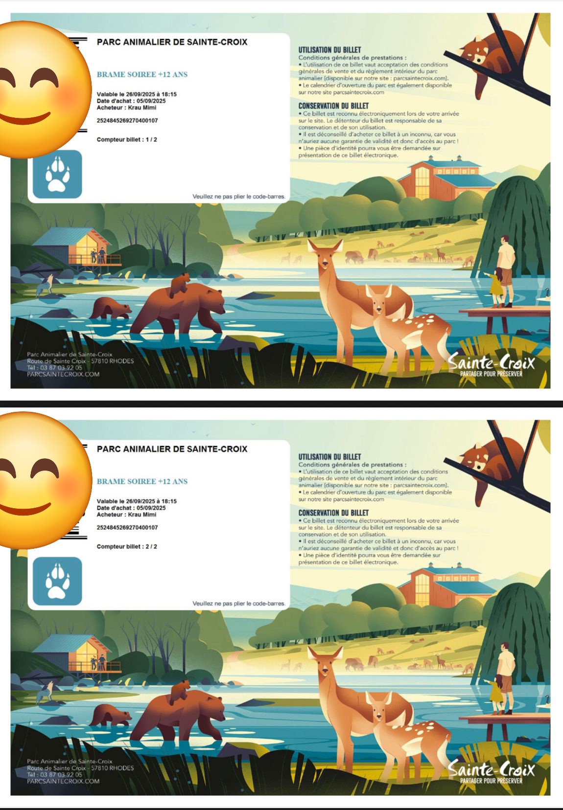2 billets pour le brame du cerf au parc de Sainte Croix. 98€ bradé 50€. Repas compris