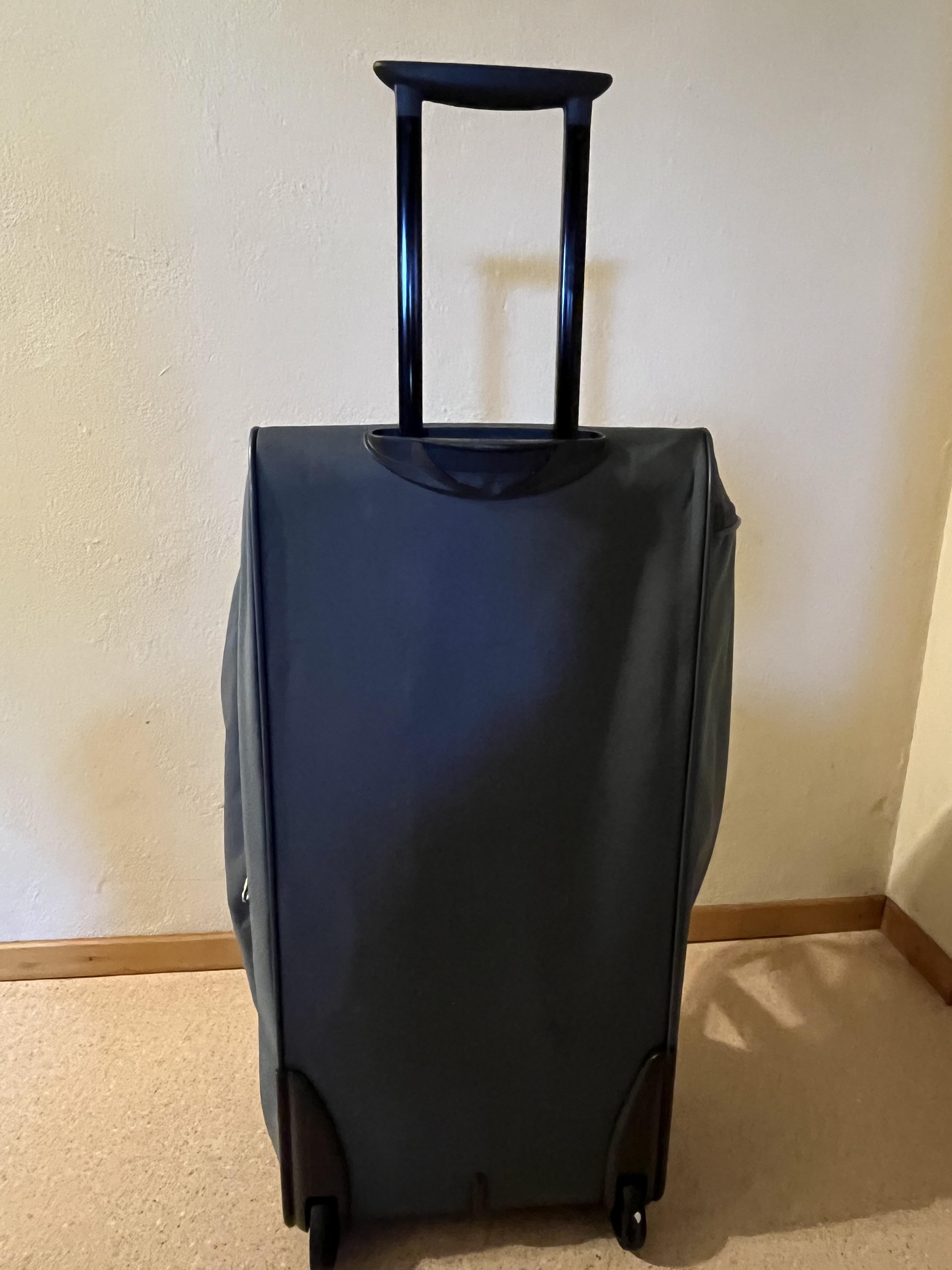 À vendre sac de voyage Samsonite bleu, deux roulettes et poignée escamotable, avec poche de rangement devant. Une autre poche pour chaussures se trouve sous le sac, idéal pour étudiant devant voyager en train.