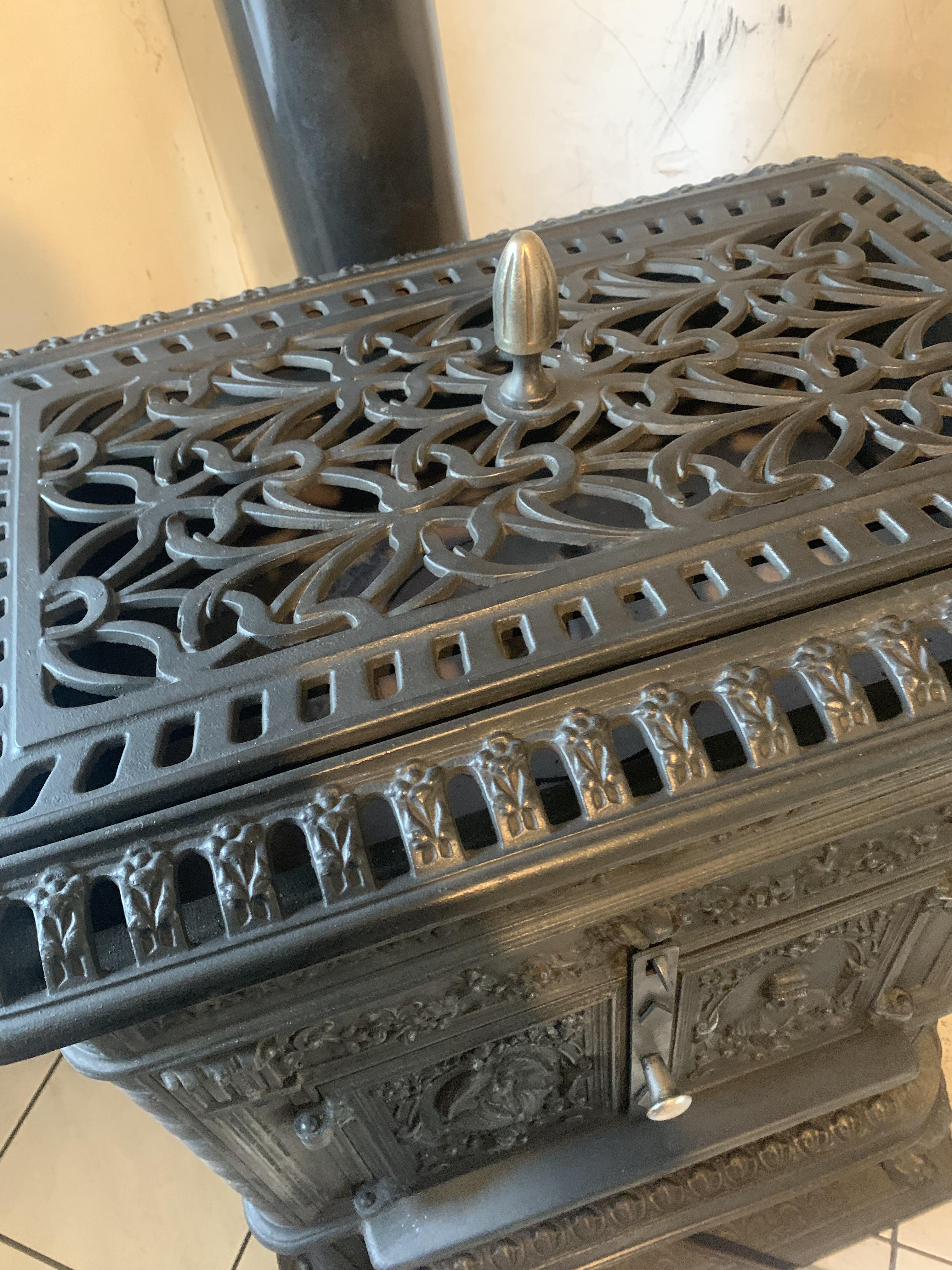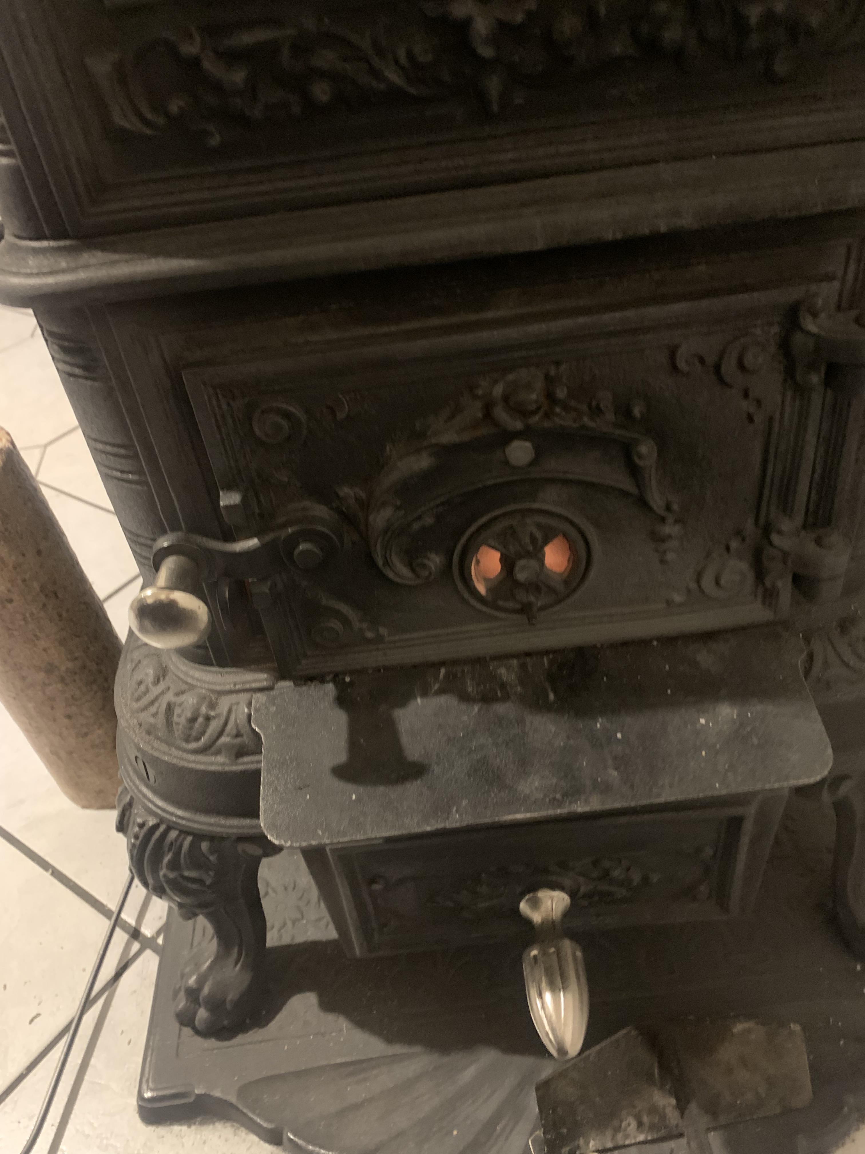 Fourneaux à Bois Vieux Niederbronn pouvant chauffer 100 m2. On peut y mijoter sur le dessus des bons plats économique, pas de gaz ou électricité. À l'avant 2 portes de four (prévoir de changer la plaque derrière les 2 portes) seul frais à prévoir. Économique l'hiver dernier, chauffage 1500 ou 1600 euros pour tout l'hiver. On peut y mettre du bois ou des bûches.