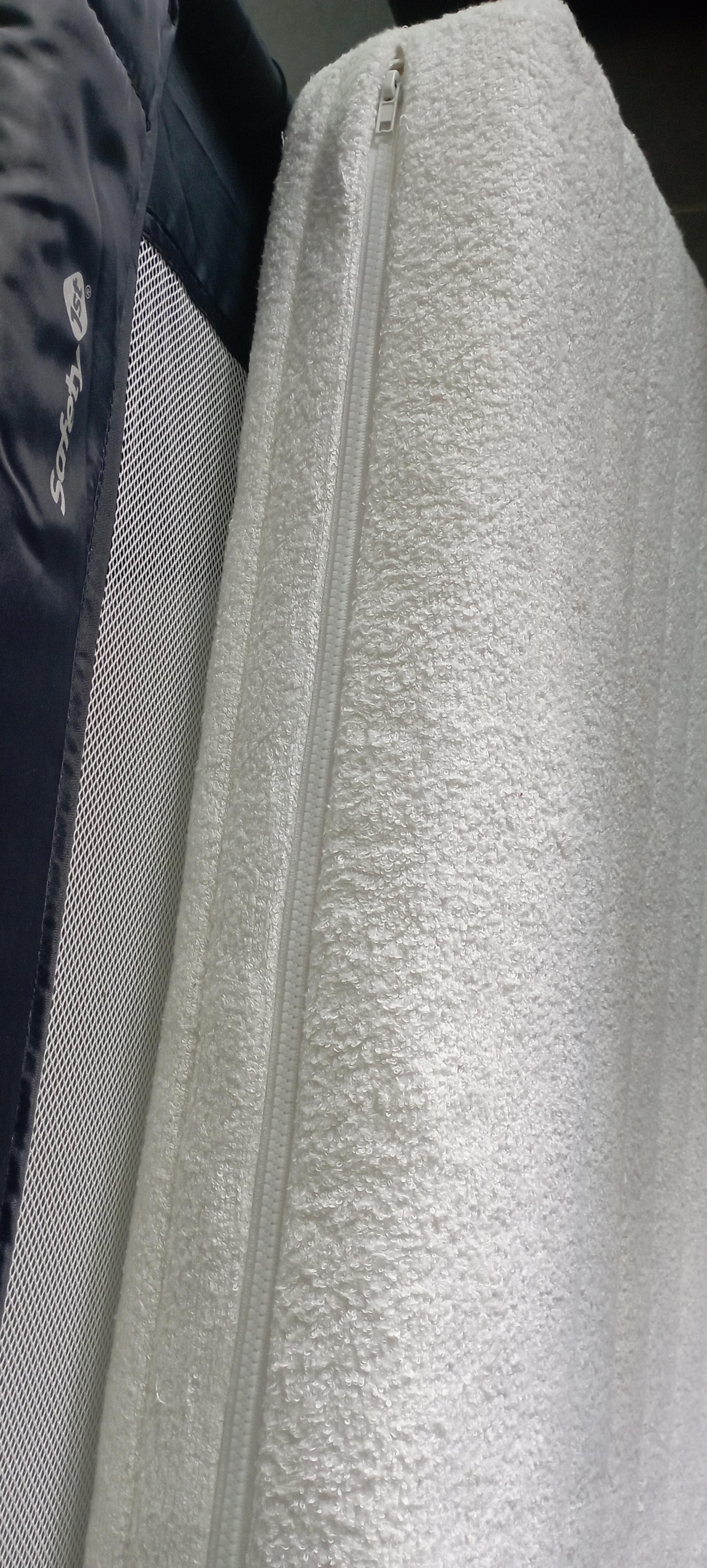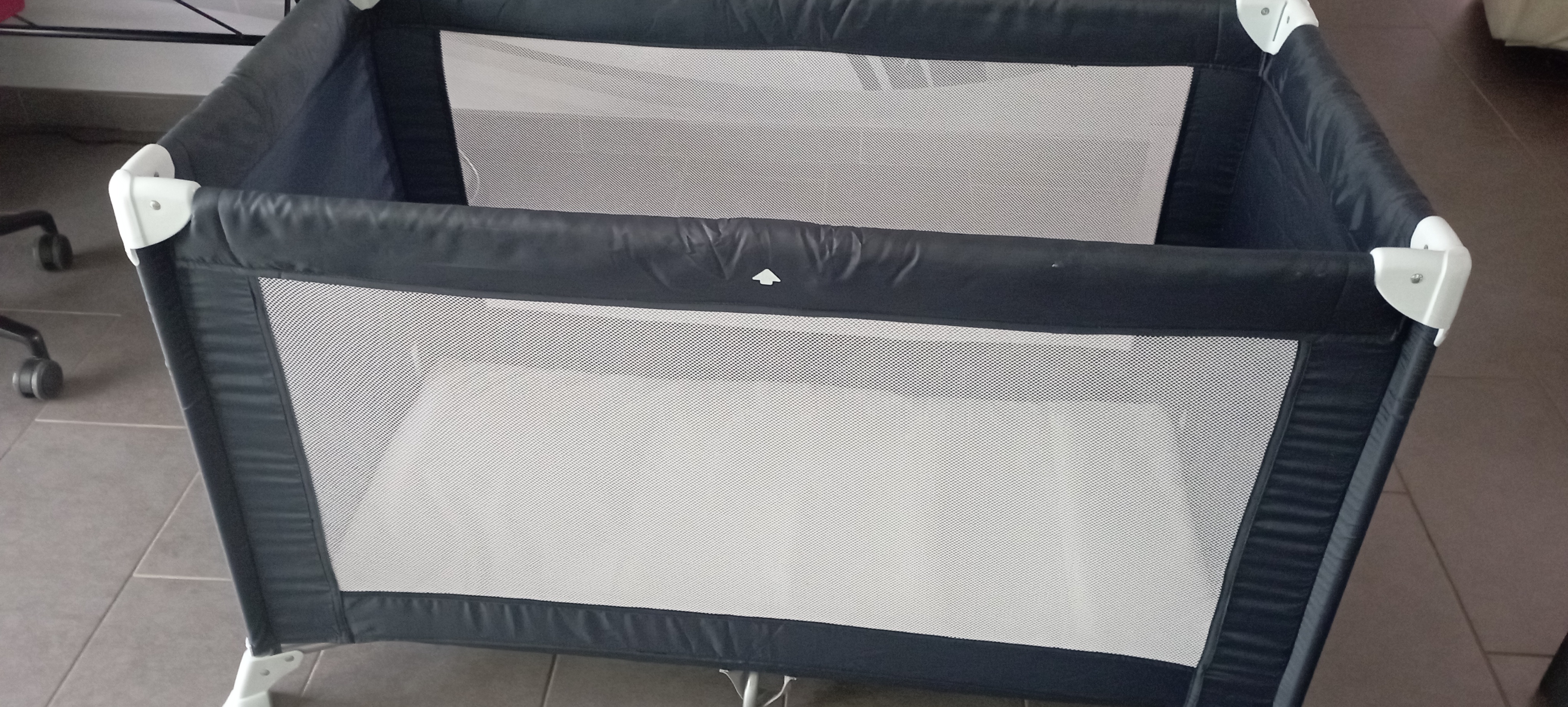 Je vends un lit parapluie avec le matelas d'une épaisseur de 12cm. Le lit est de la marque Safety.