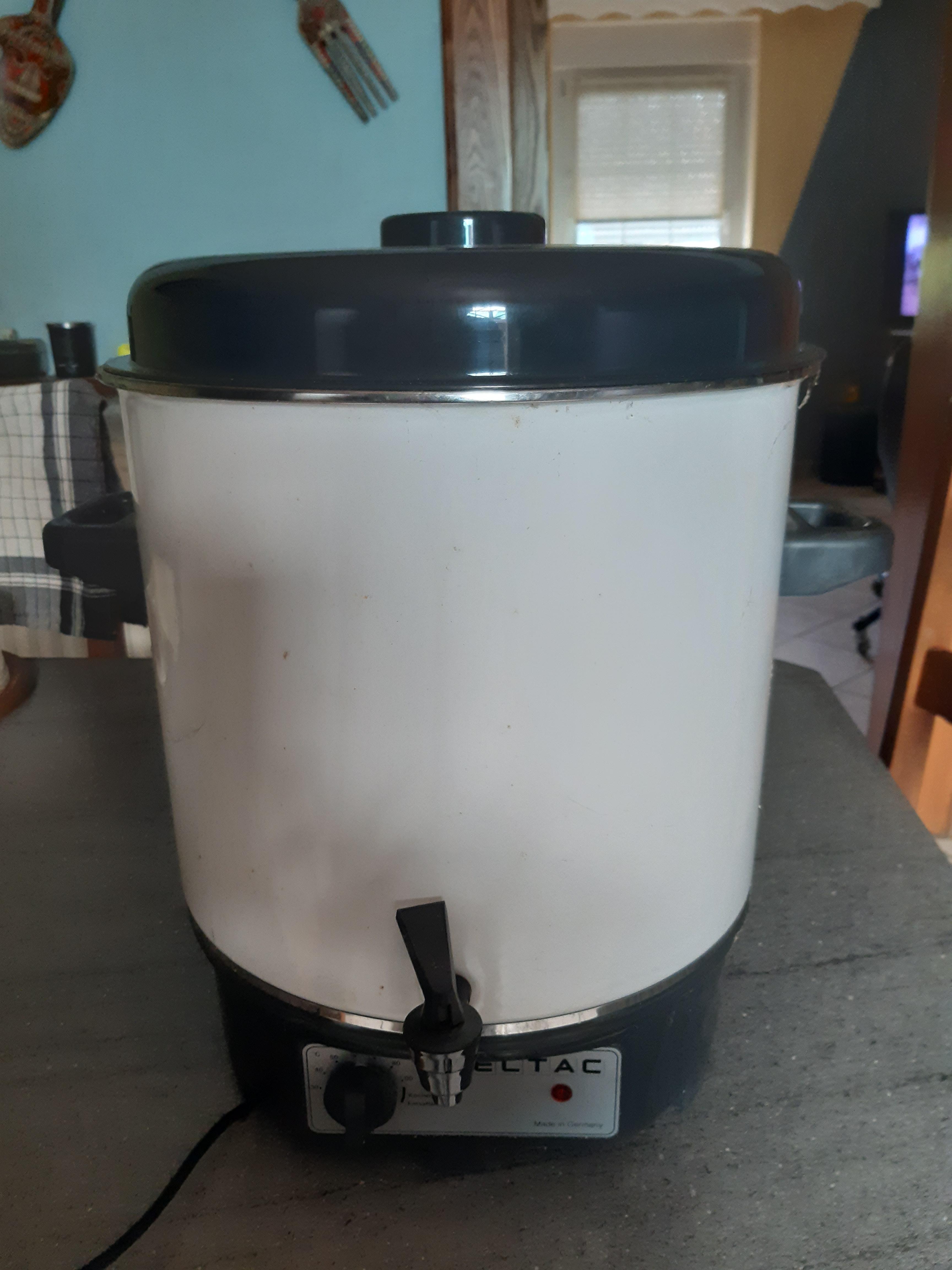 <p>autocuiseur et pour vin chaud de marque allemande ELTRAC d\'une puissance de 1800 watts et d\'une contenence de 27 litres et dans un état proche du neuf servi une fois pour vin chaud hiver 2024 - 2025 </p>