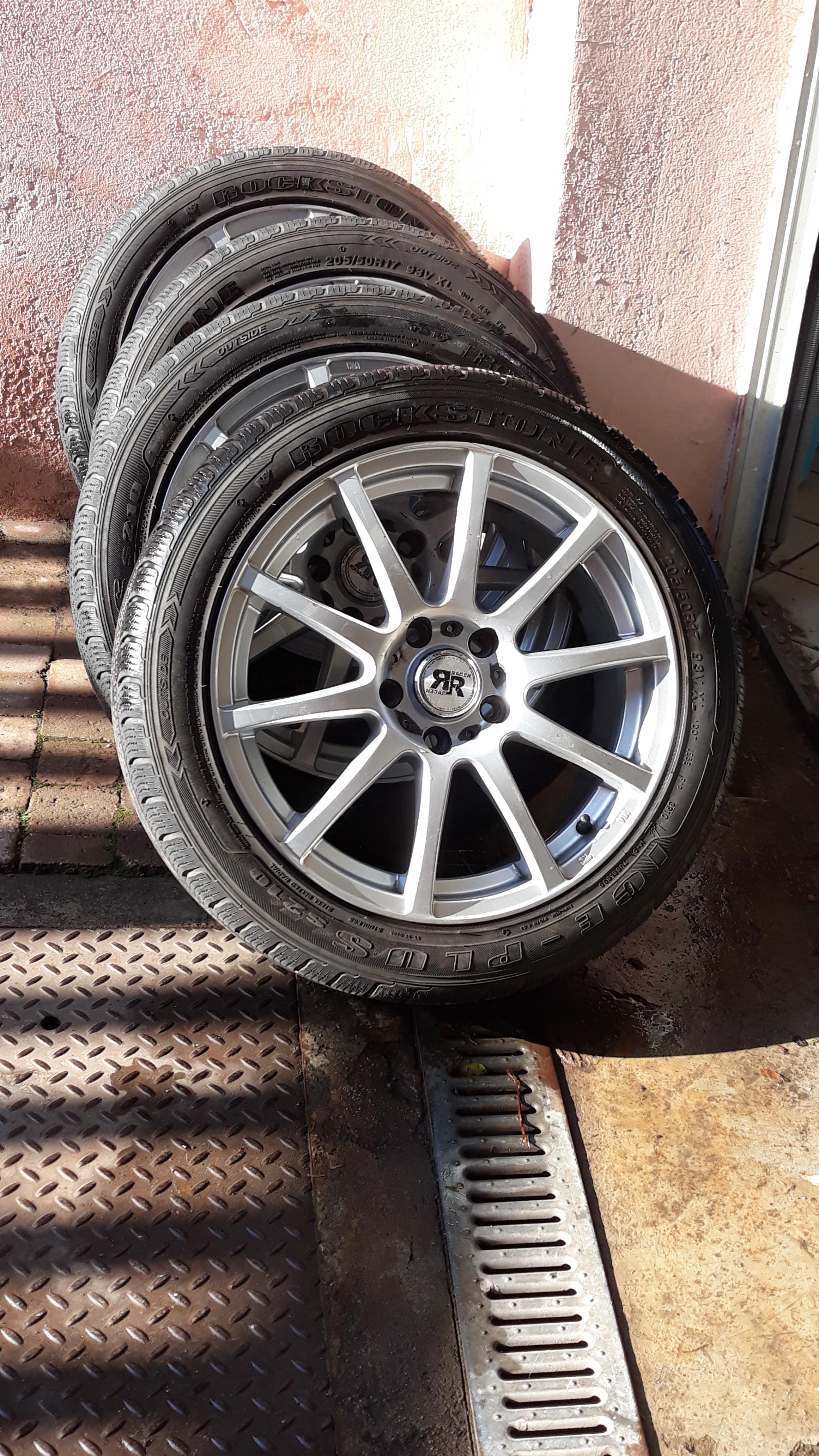 Vds 4 pneus neige + jantes - 5 trous - 205/50/77 - Très bon état.