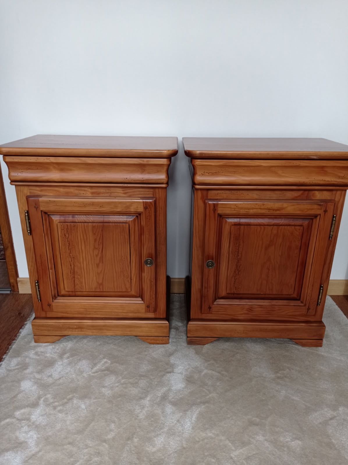 Deux tables de nuit en bois, un tiroir et une porte, H65cm larg 50cm