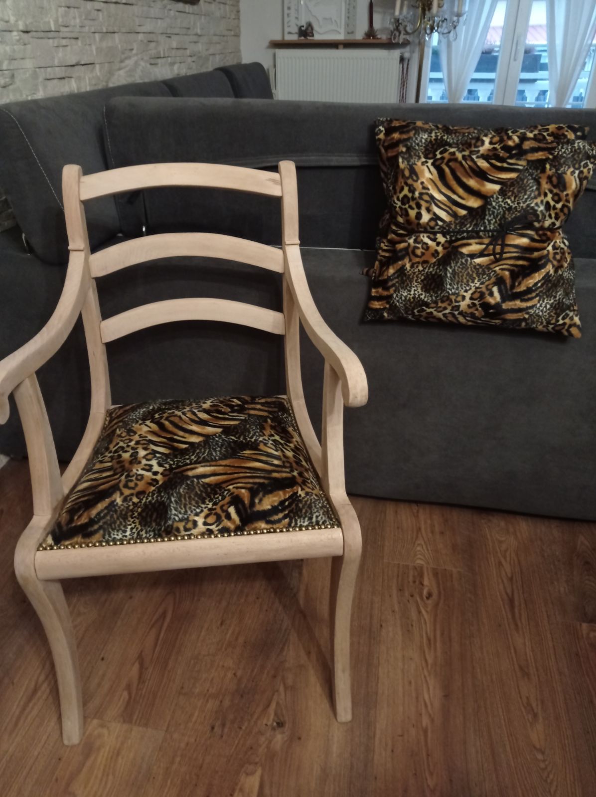 Deux chaises avec accoudoirs et deux coussins assortis 45/43cm