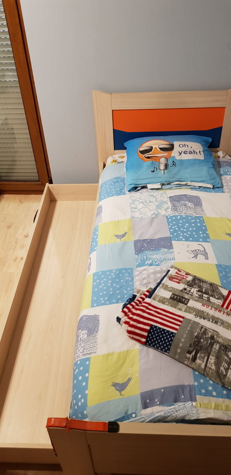 Chambre enfant Gautier compléte avec un lit tiroir,( sommier inclus) une table de chevet, une grande armoire et une commode