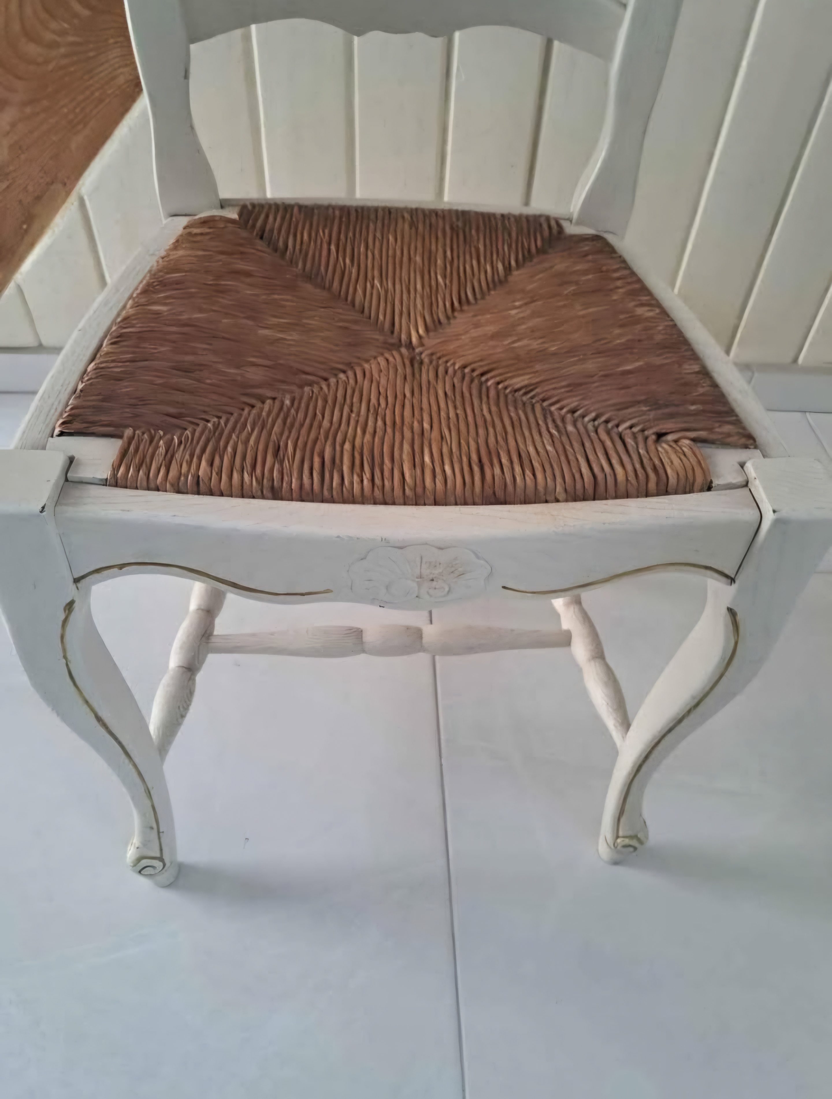 Table chêne massif + chaises assorties (4 + 2 à remettre en état au niveau de l'assise).