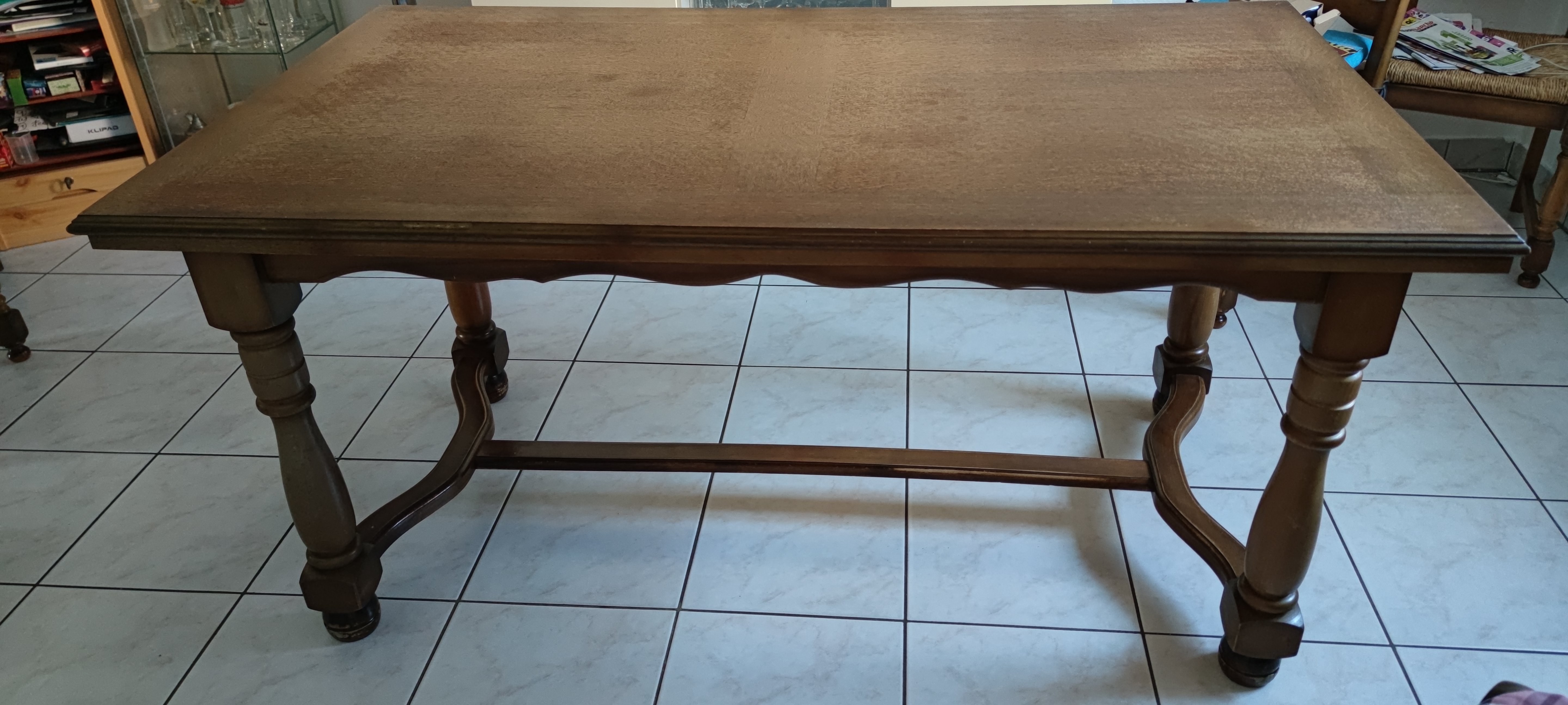 Table de salle à manger 1.60 x 90 cm avec 6 chaises en bon état