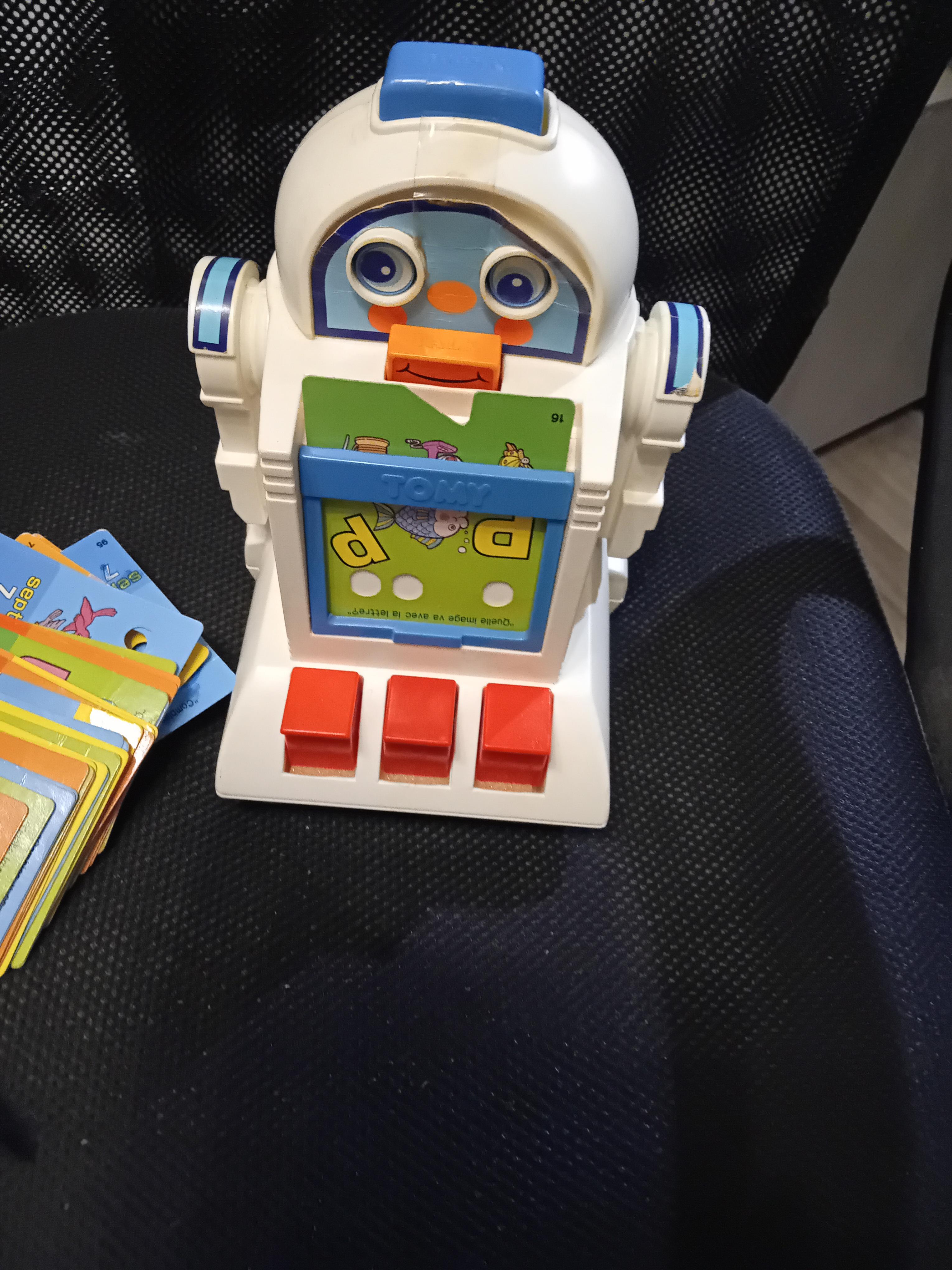 Il parle et pose 100 questions différentes grâce aux cartes à insérer