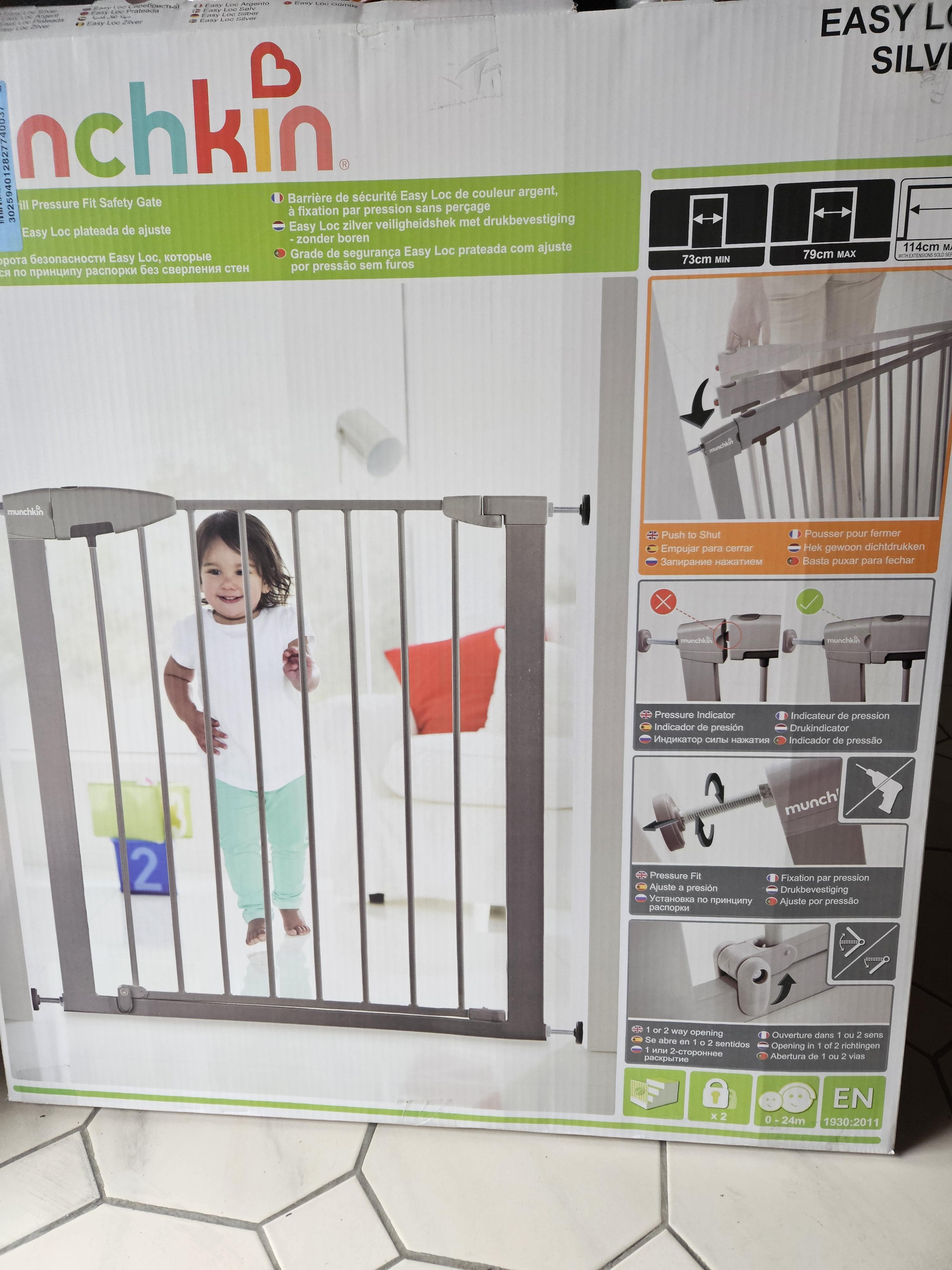 2 Barrières de sécurité enfant Munchkin couleur argent. Larg. 73cm min jusq'u'à 79cm max