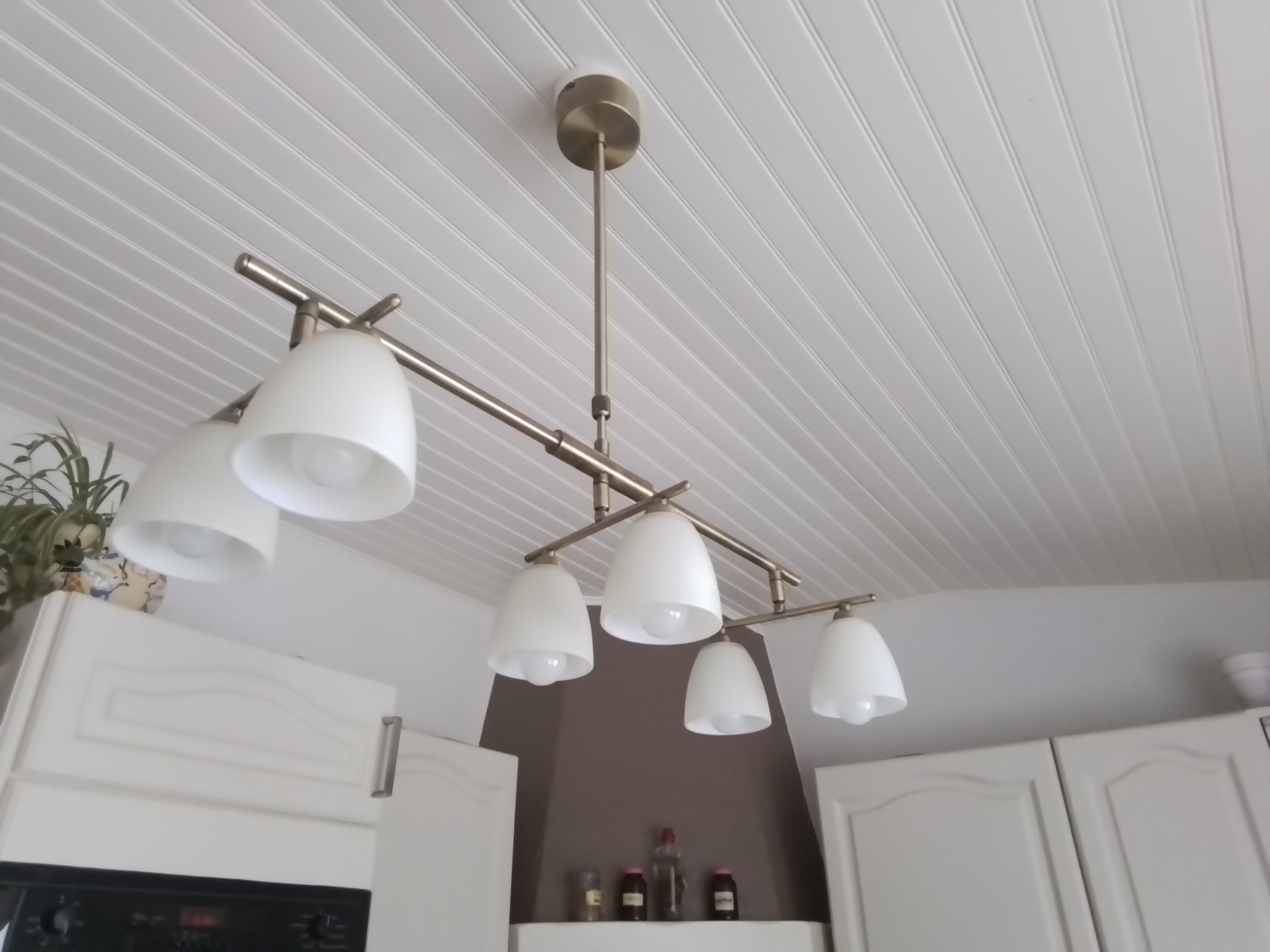 Belle lampe suspension en laiton avec 6 ampoules.