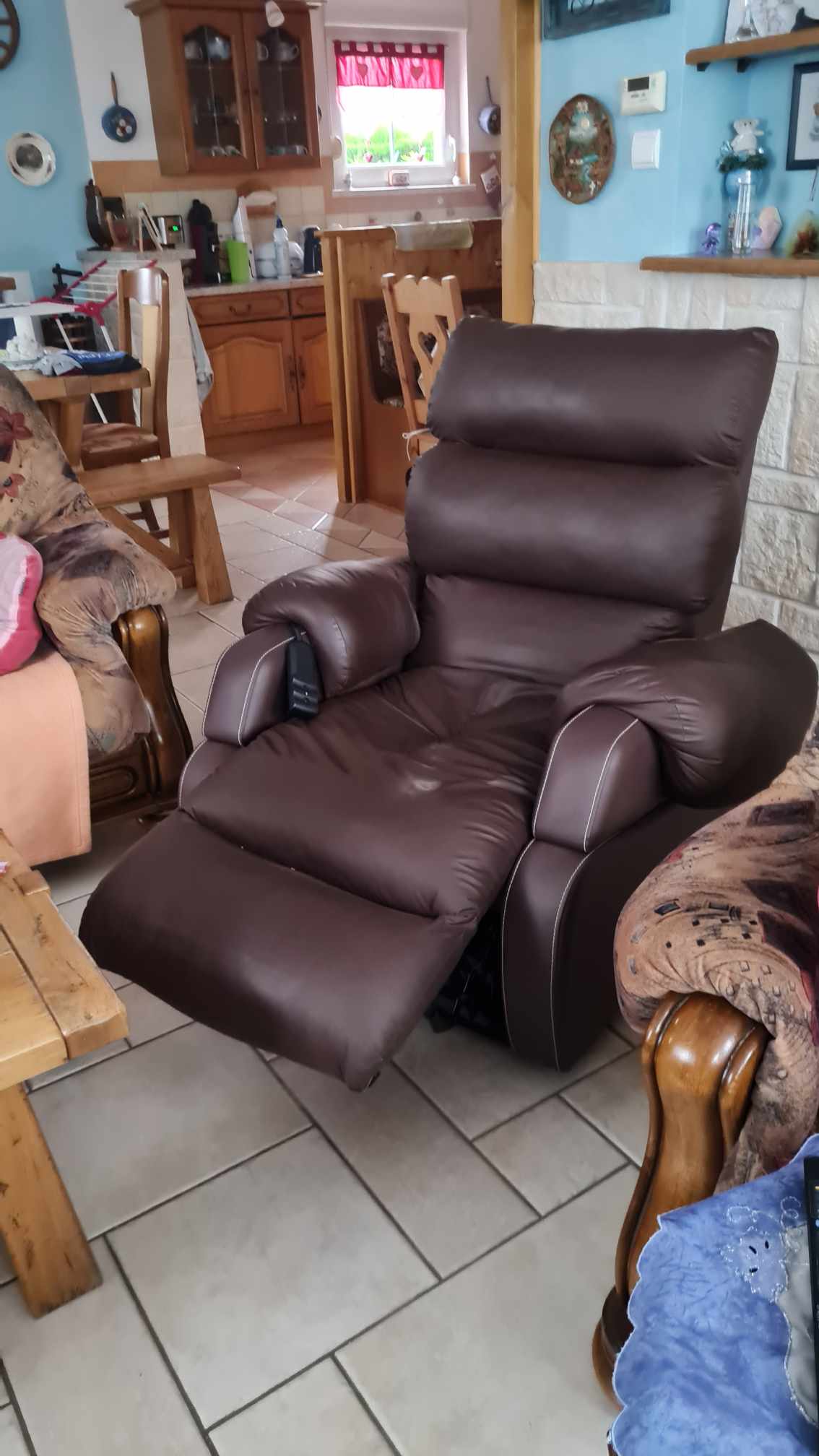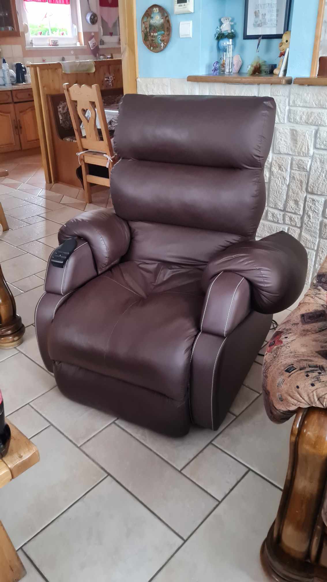 Fauteuil électrique relevable en très bon etat couleur brun marron.