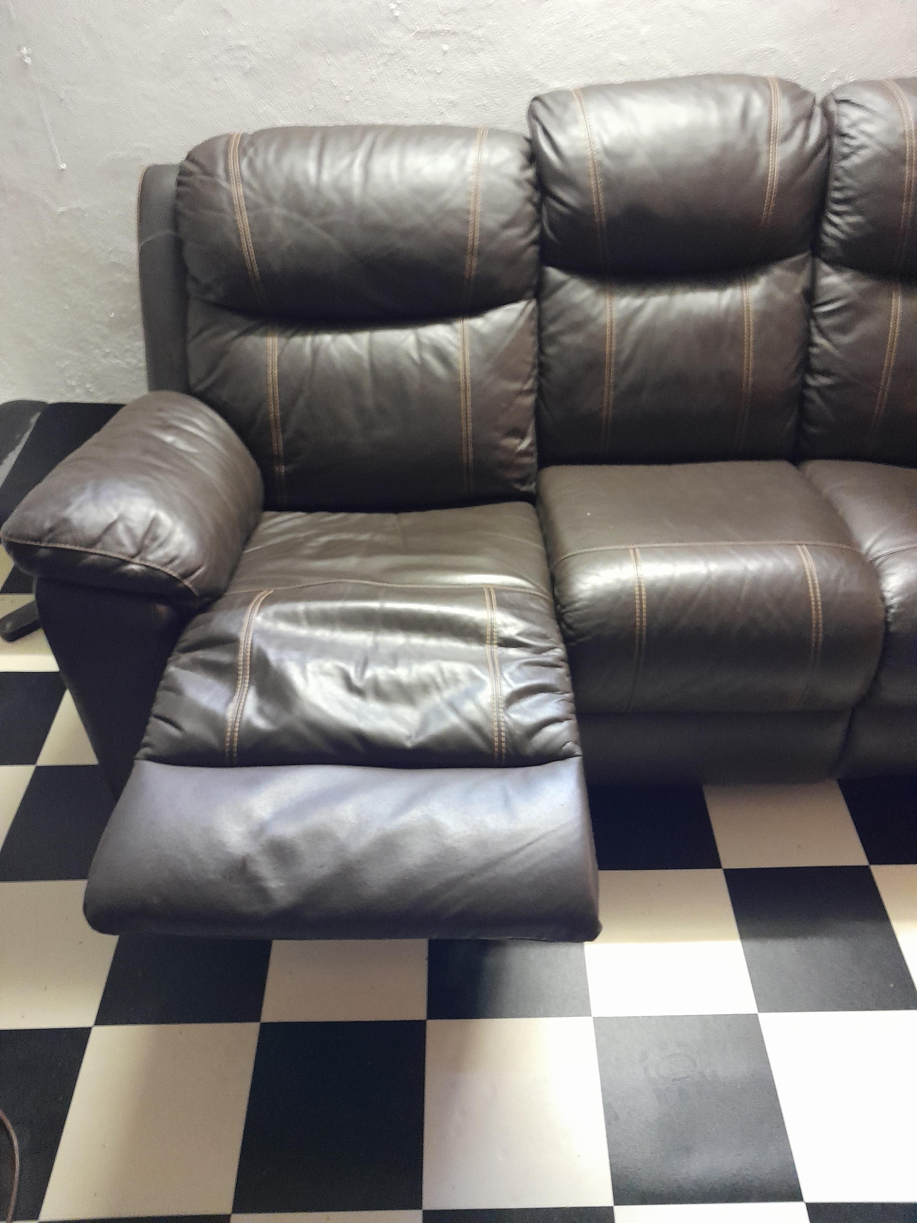 Canapé 3 places en cuir en très bon état.