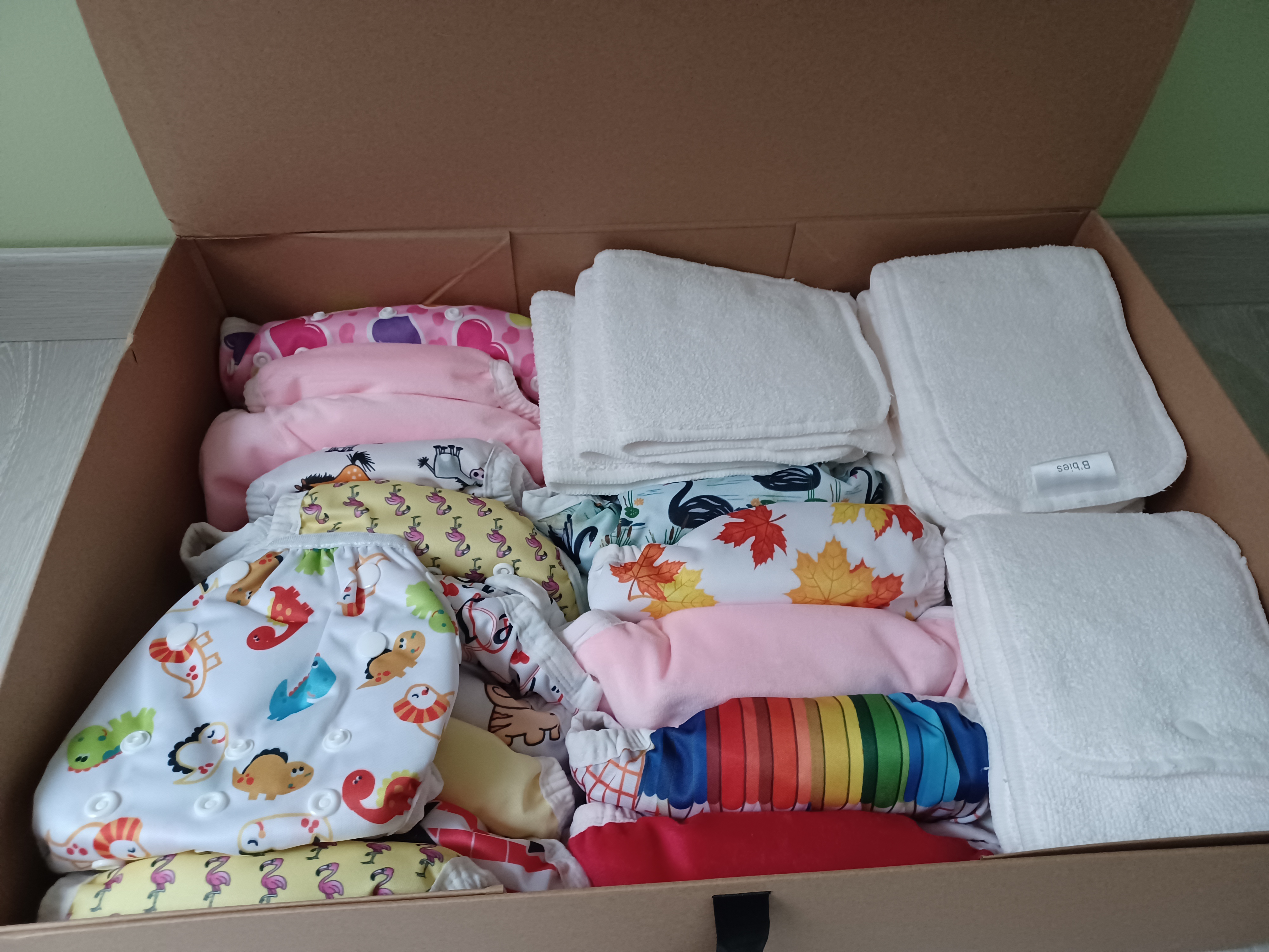Couches lavables pack découverte (TE1, TE2, culottes d’apprentissage de la propreté,lingettes en bambou lavables). Pack jamais utilisé.