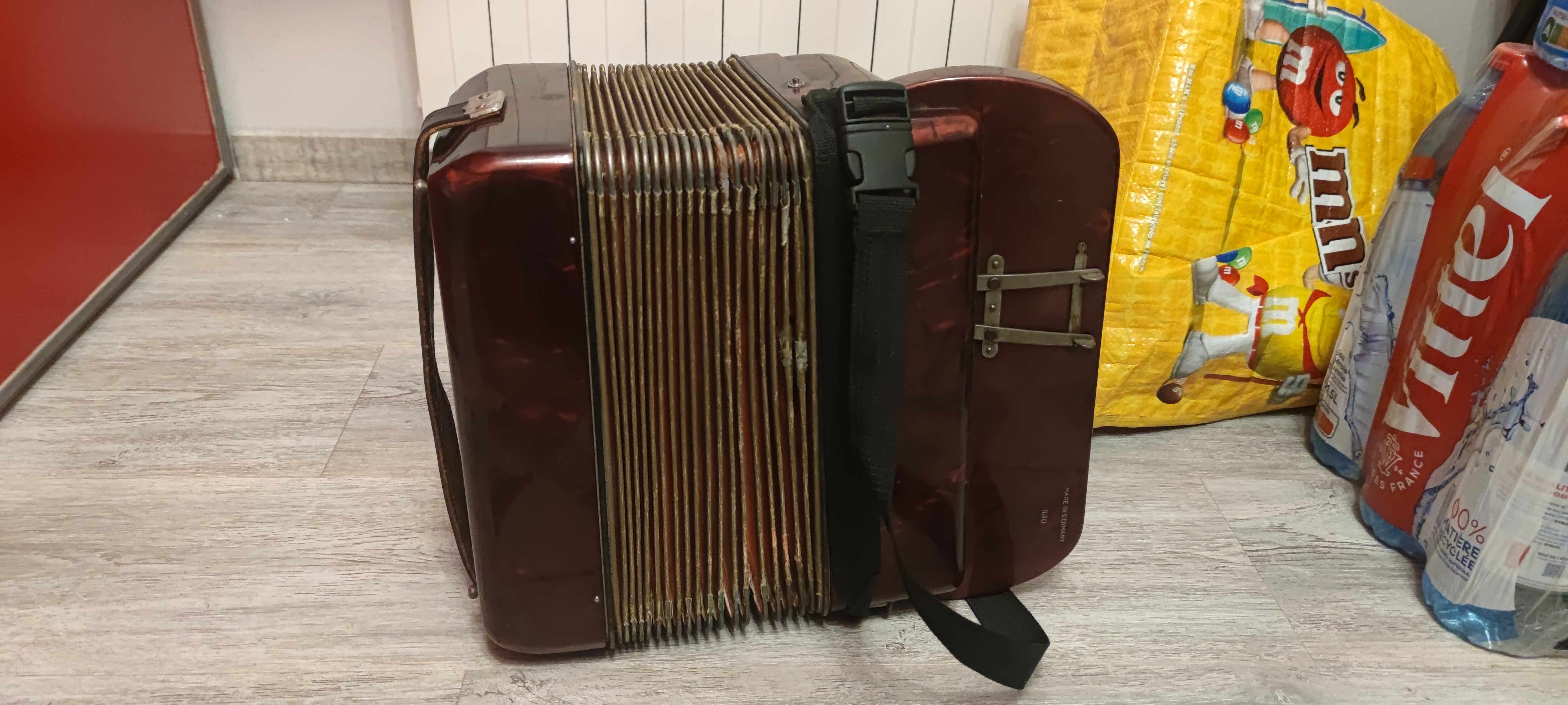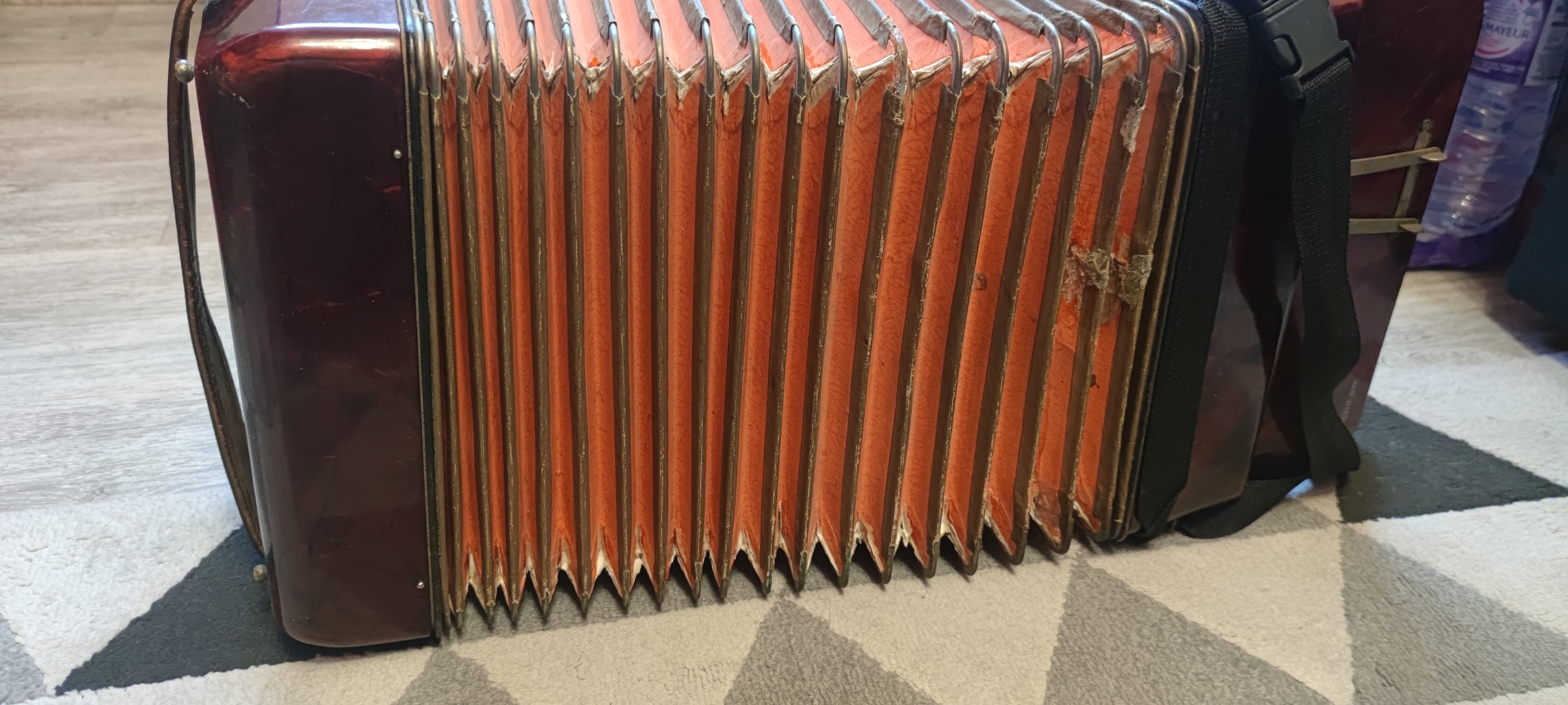 Accordéon en l'état avec fausses notes et fuite d'air au soufflet.