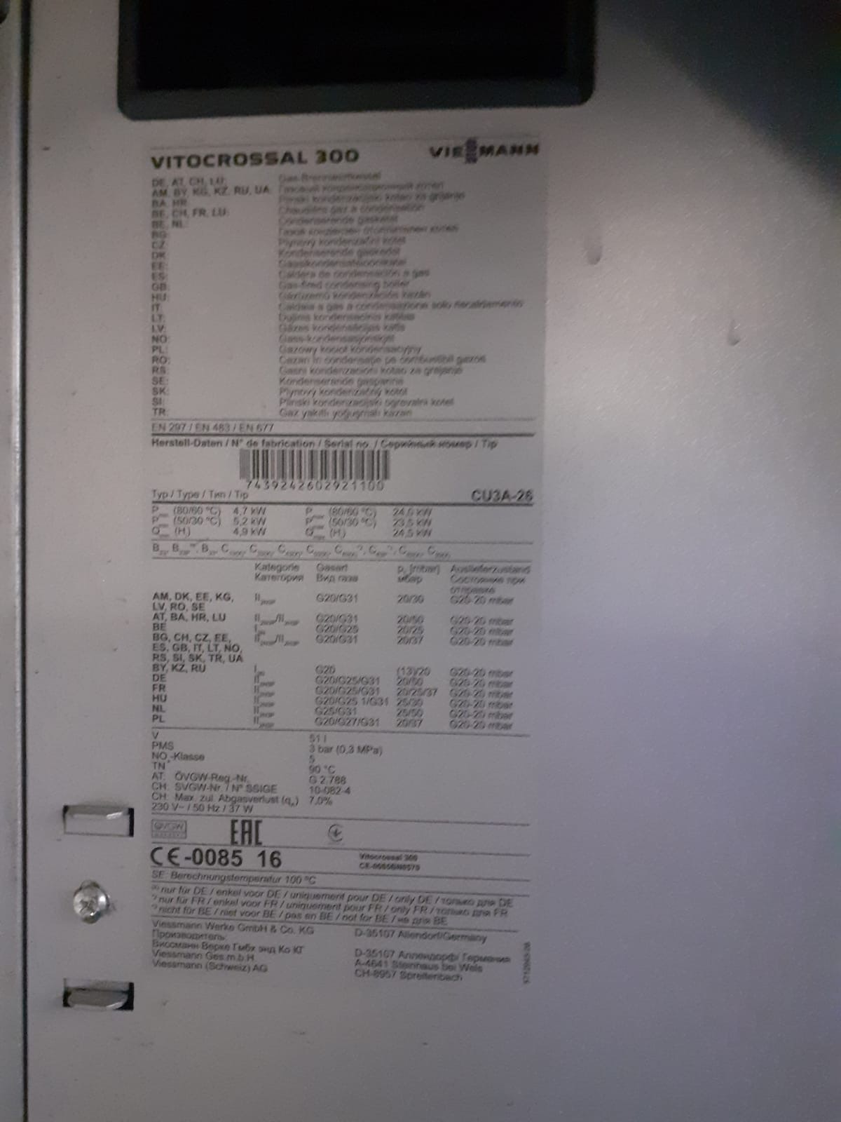 Chaudière gaz à condensation Viessmann VITOCROSSAL 300 - 26 KW année 2018, ayant servi cinq hiver, avec différents accessoires (dont thermostat d'ambiance).