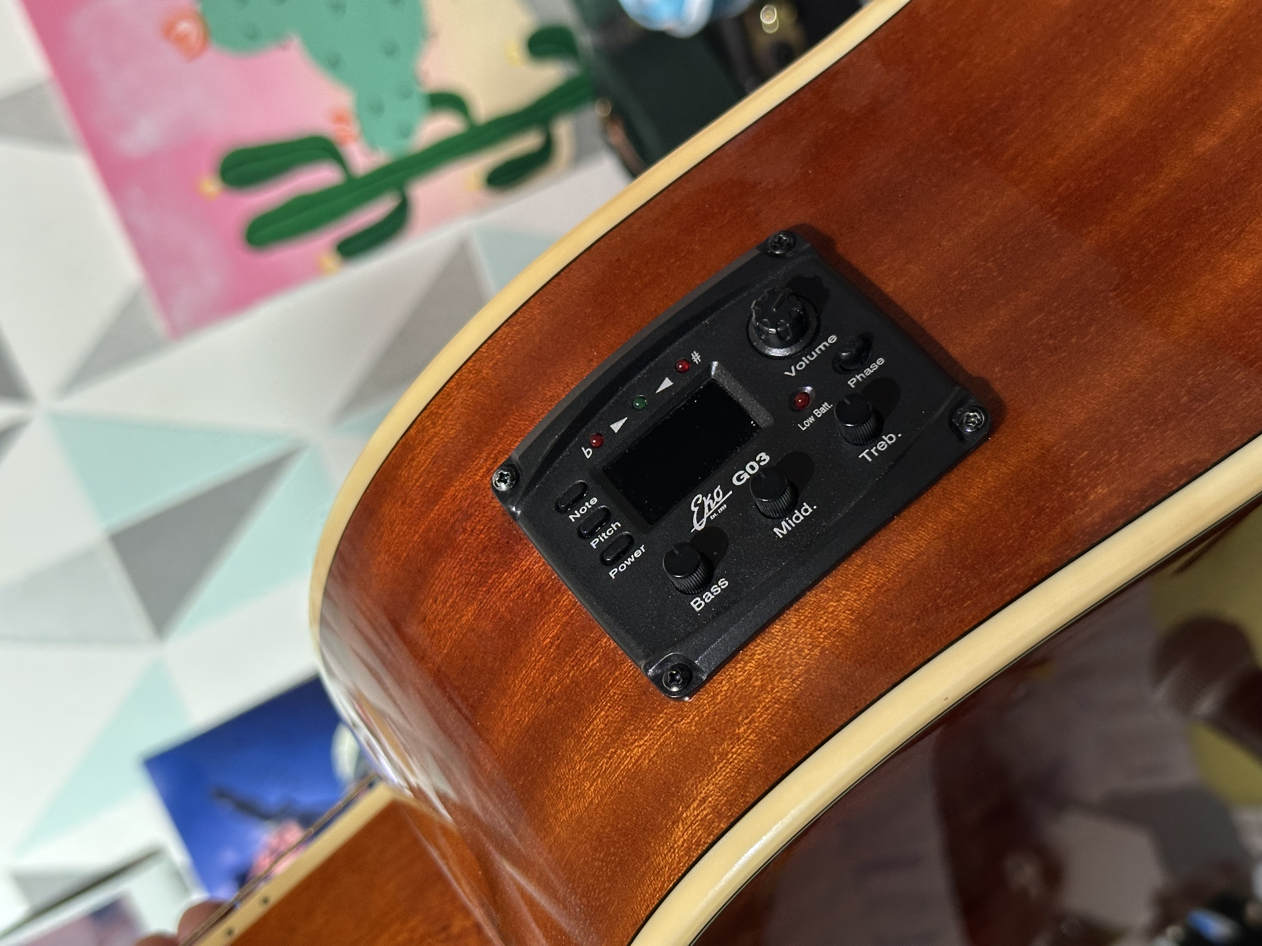 Le système électro-acoustique intégré permet une utilisation en amplification, idéale pour la scène, les répétitions ou l’enregistrement. (accordeur intégré)
