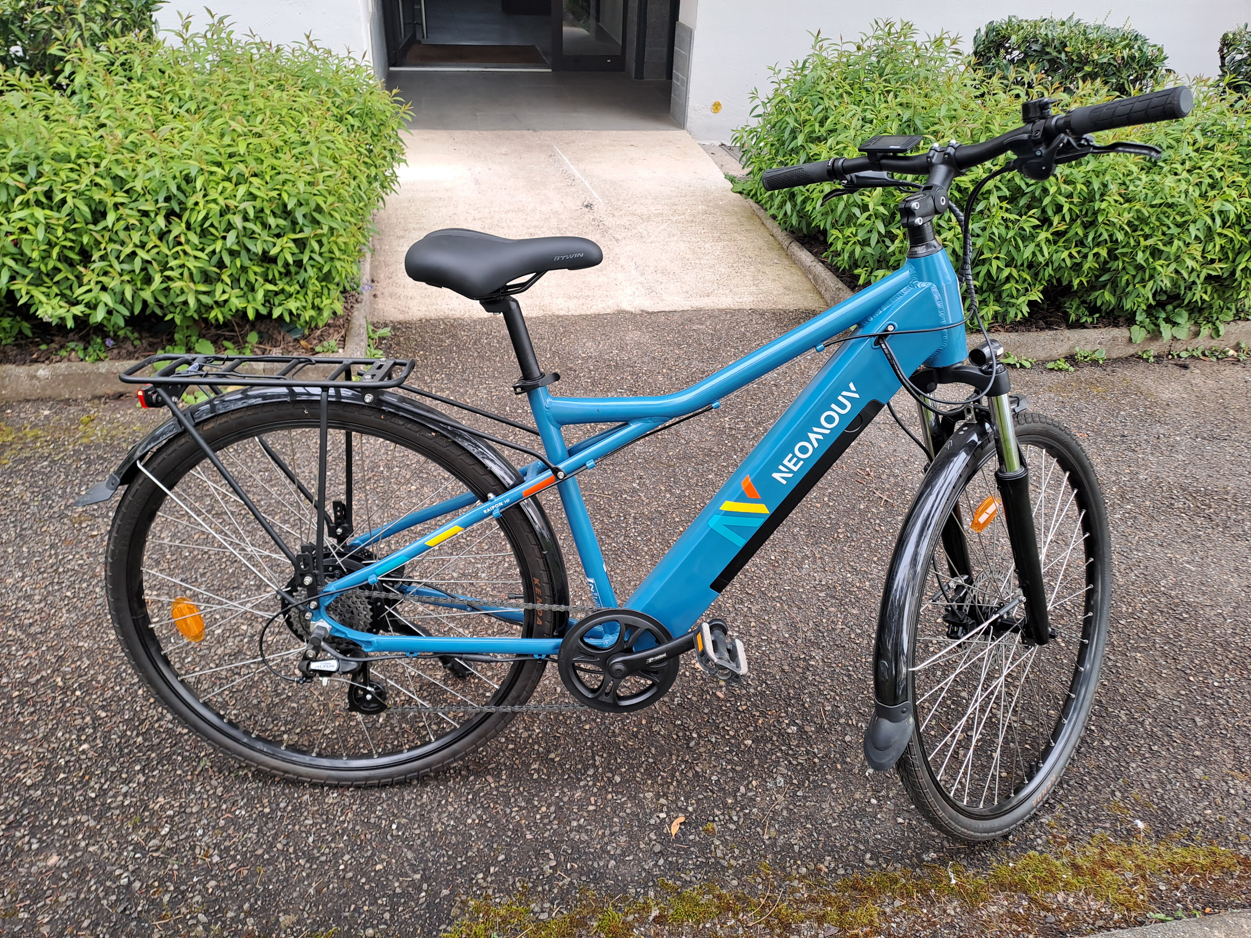 Vélo électrique bleu , taille S/M excellent état ,peu servi encore sous garantie facture a l'appui, 170 kms au compteur.
