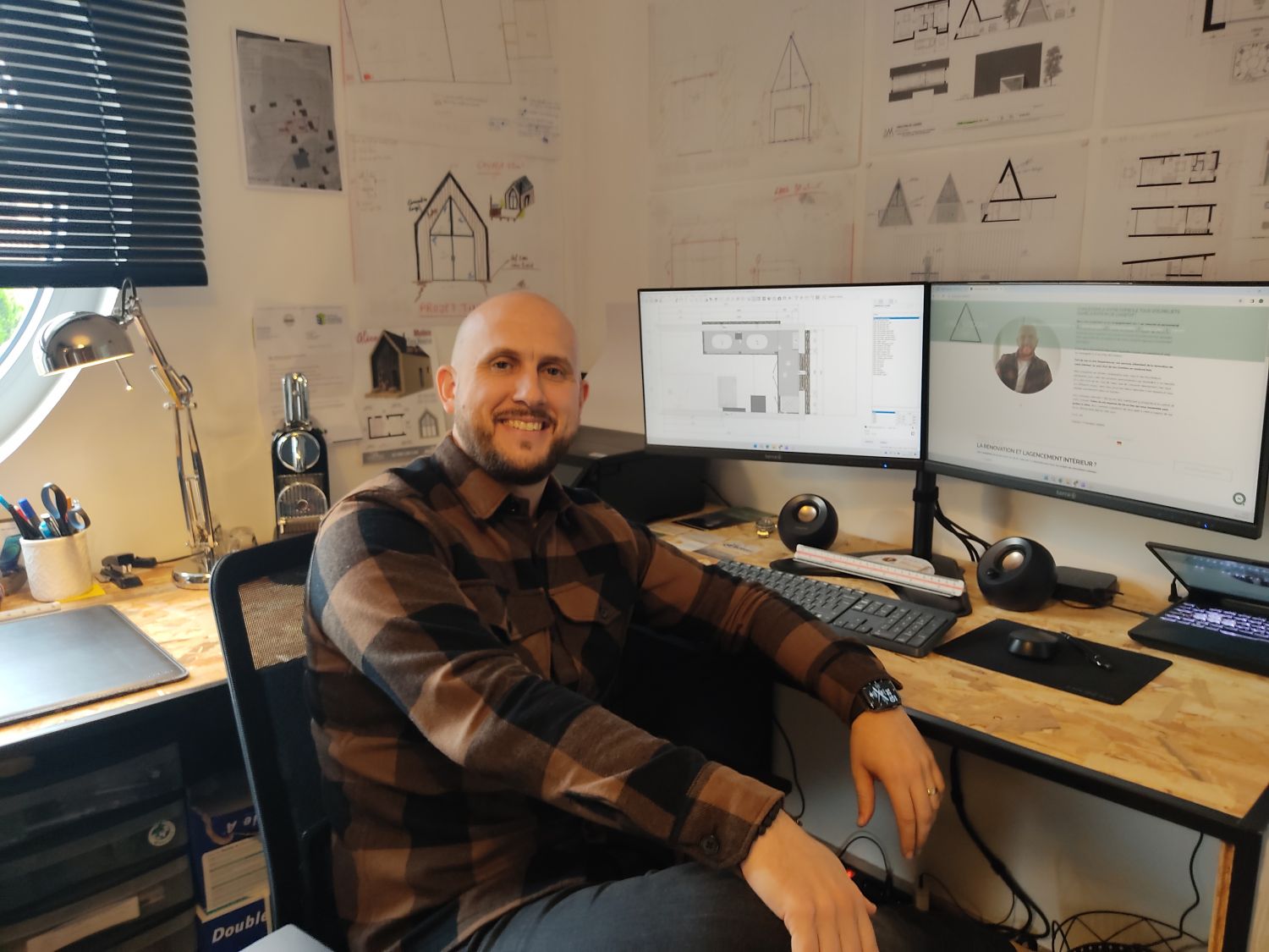 Je viens à ton domicile, et tu m'expliques ton projet. À partir de cette base, je vais prendre les mesures, je vais faire des croquis. On regardera aussi ce que tu as le droit ou non de faire, on consultera le PLU. Ensuite, je vais travailler avec l'ensemble de mes partenaires. Moi, je serai ton seul interlocuteur, je vais suivre ton projet de A à Z, du dépôt du permis, jusqu'à la structure bois de ton car port pour ta voiture...