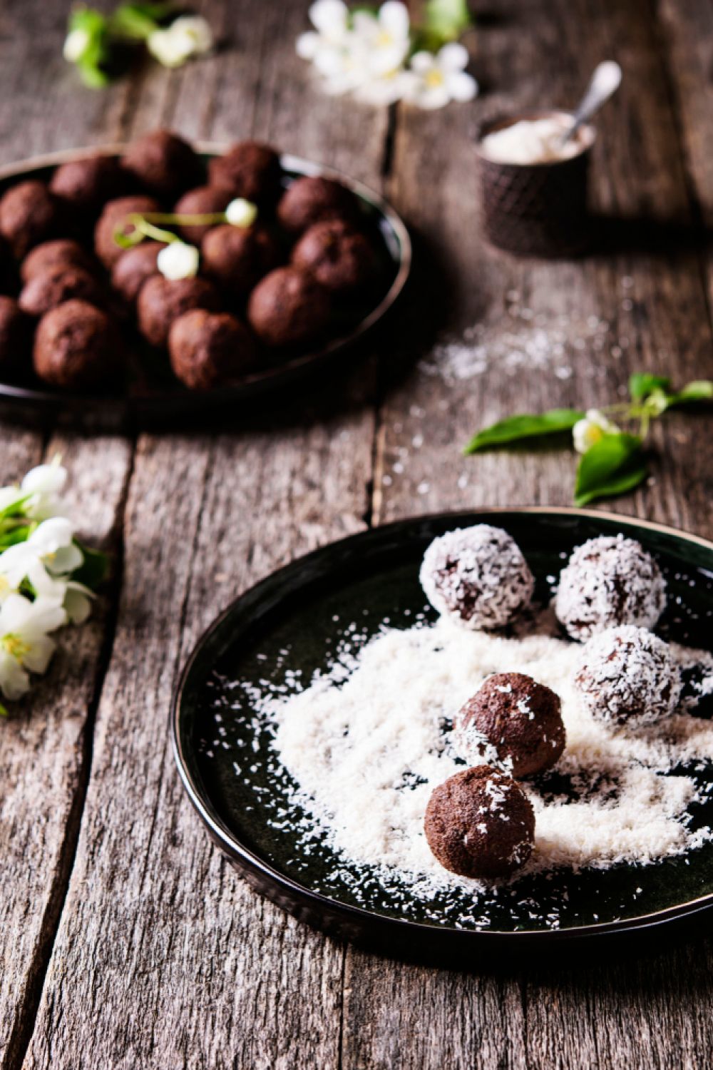 Former des boules à l’aide de ses mains puis les rouler en dans le cacao en poudre.