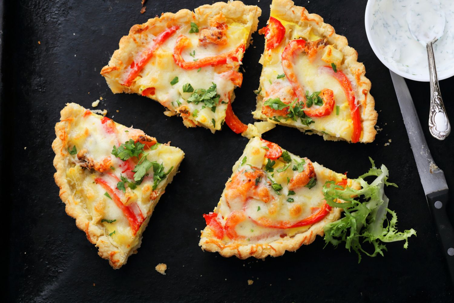 Déposez les légumes sur le fond de tarte, répartissez le bacon. Fouettez les œufs et la crème fraîche, salez, poivrez et versez le tout sur la tarte.