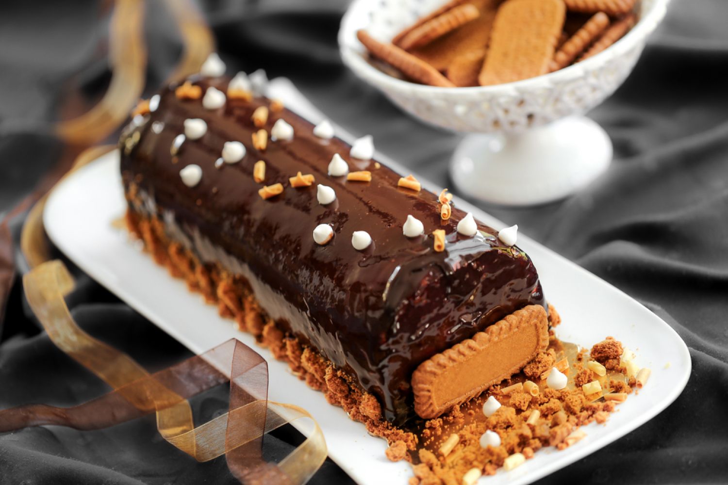Répartissez cette crème sur la génoise à la vanille puis roulez votre bûche de Noël aux spéculoos. Réservez au réfrigérateur pendant une heure avant de servir.